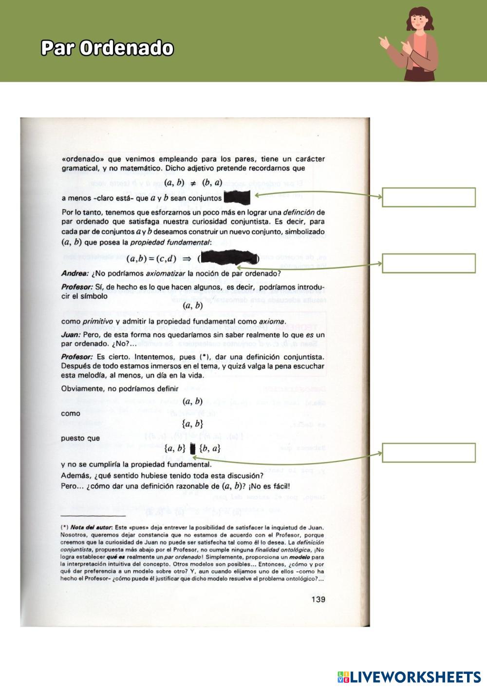 Created byKarina Alexandra Pintos Gonnet Matemáticas Pares Ordenados Age 15+ level: CFE 1er año - Matemática Spanish Author's Instructions My Google Classroom Courses × 0 classes selected (0 students total) Quick Access Select all classes (0 classes) All Classes Loading courses... Cancel Share Share to selected Course __COURSE_NAME__ __STUDENT_NAME__ (__STUDENT_EMAIL__) Par ordenado Download Worksheet Validation Check my answers Emails my answers to my teacher Full name Group/level School subject Teacher's email or key code Close Submit Validating worksheet... (12) Your answers have been sent to your teacher. Good luck! OK We encountered an error submitting your answers. Please try again. OK Advertisement | Go Ad Free Created byKarina Alexandra Pintos Gonnet Matemáticas Pares Ordenados Age 15+ level: CFE 1er año - Matemática Spanish Author's Instructions