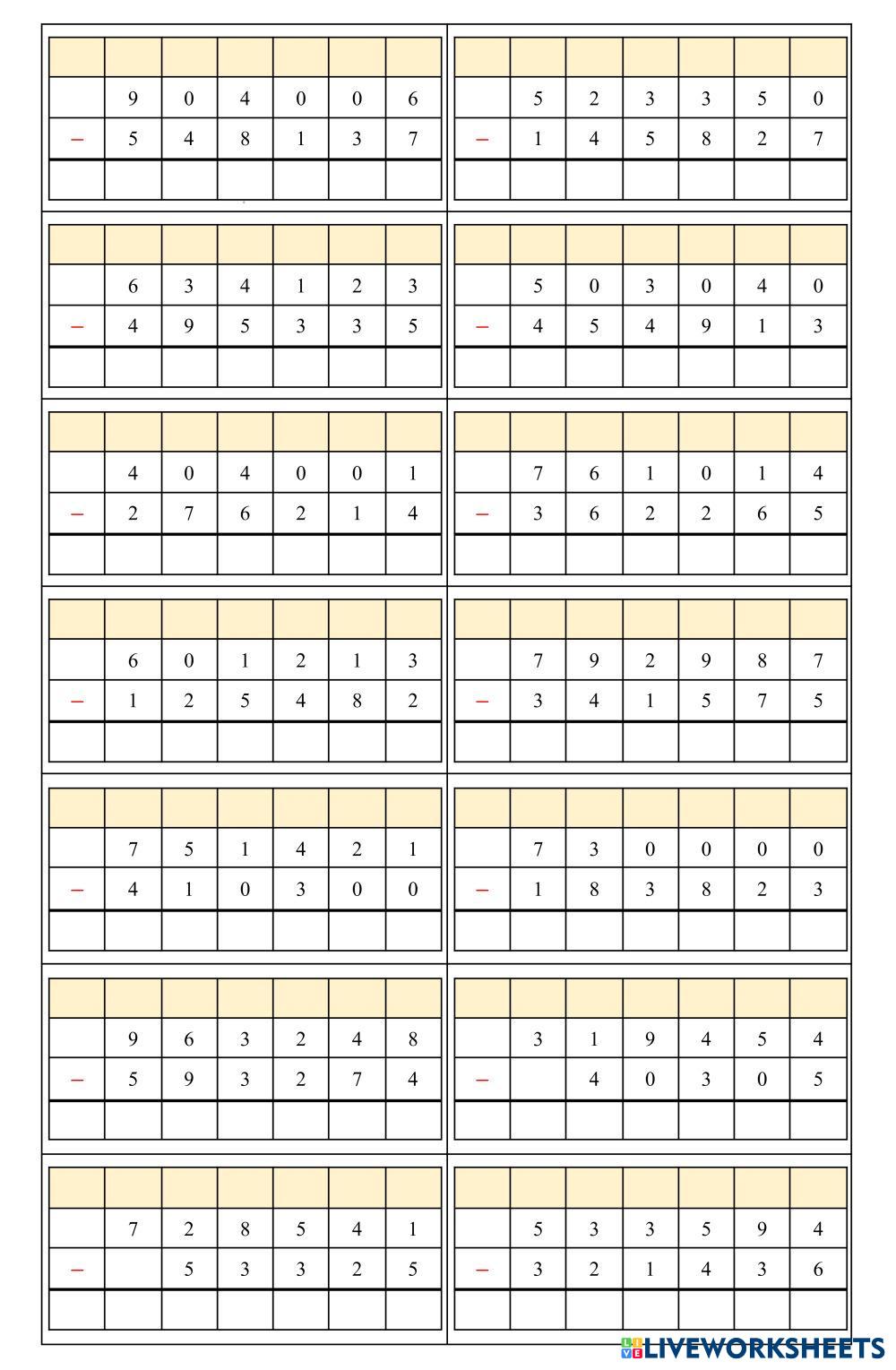 Resuelve las siguientes restas, ten en cuenta que en algunos casos se debe pedir prestado.
