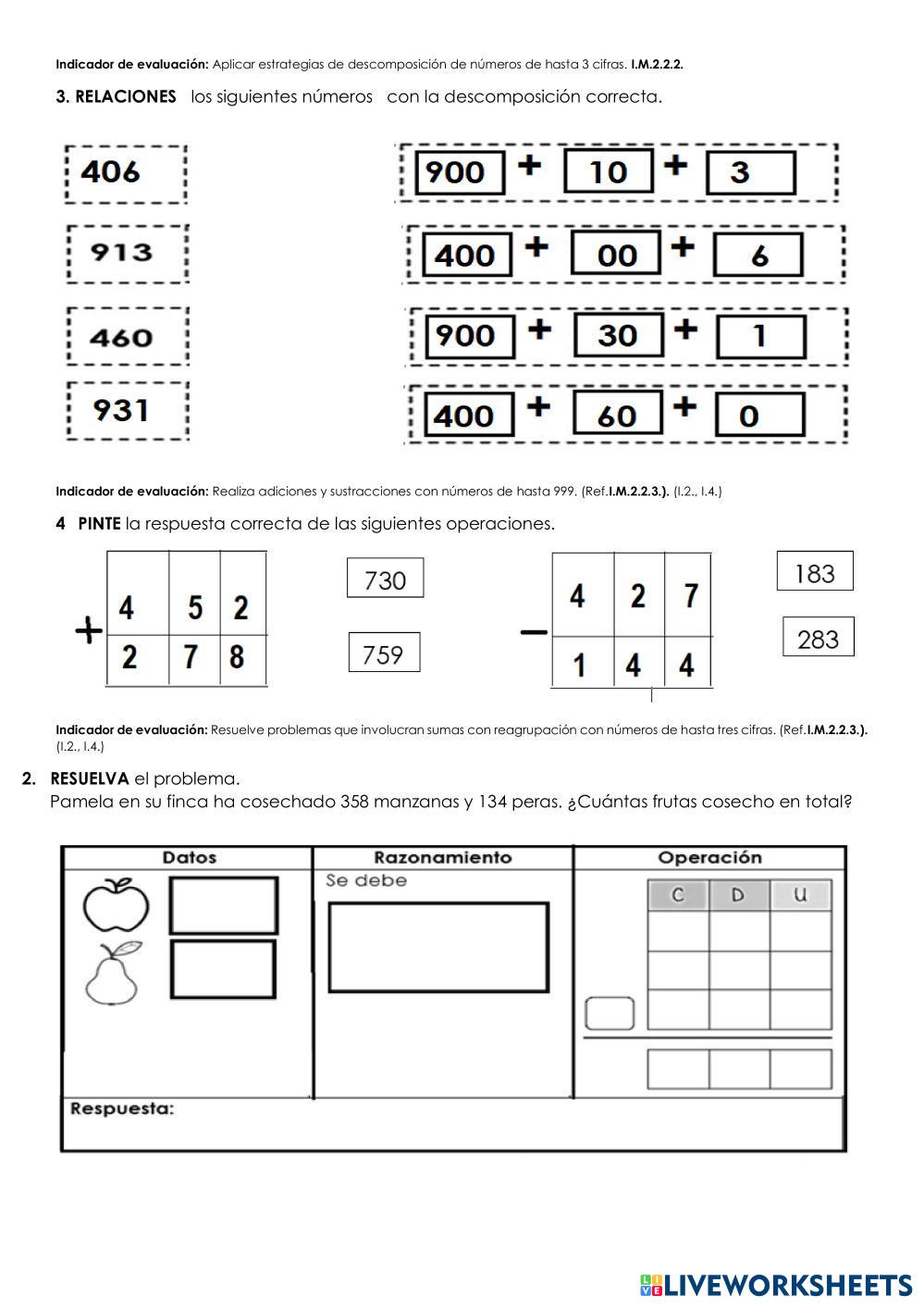 Created by Monilu Math Elementary 3rd grade Addition and Subtraction Spanish Author's Instructions LEA CON MUCHA ATENCIÓN My Google Classroom Courses × 0 classes selected (0 students total) Quick Access Select all classes (0 classes) All Classes Loading courses... Cancel Share Share to selected Course __COURSE_NAME__ __STUDENT_NAME__ (__STUDENT_EMAIL__) EVALUACIÓN DE MATEMÁTICA Download Worksheet Validation Check my answers Emails my answers to my teacher Full name Group/level School subject Teacher's email or key code Close Submit Validating worksheet... (12) Your answers have been sent to your teacher. Good luck! OK We encountered an error submitting your answers. Please try again. OK Advertisement | Go Ad Free Created by Monilu Math Elementary 3rd grade Addition and Subtraction Spanish Author's Instructions LEA CON MUCHA ATENCIÓN Explore Worksheets 2026 Math 3rd grade 2026 Addition and Subtraction - Math ACTIVIDAD 1 Addition without regrouping Math 3rd grade Addition without regrouping Addition and Subtraction - Math Addition without regrouping Year 3 Math Practice Sheets Math 3rd grade Year 3 Math Practice Sheets Addition and Subtraction - Math Complete the following Узагальнюємо множення та ділення Math 3rd grade Узагальнюємо множення та ділення Addition and Subtraction - Math За С. Скворцовою