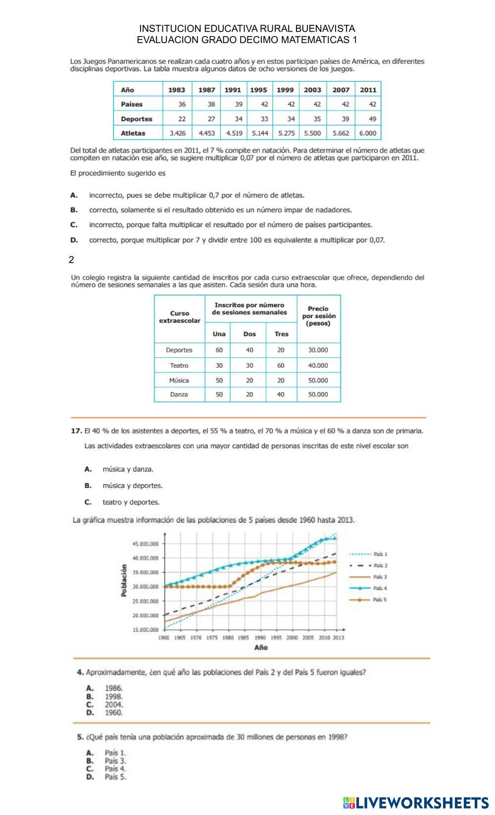 Examen de precálculo correspondiente al mes de marzo