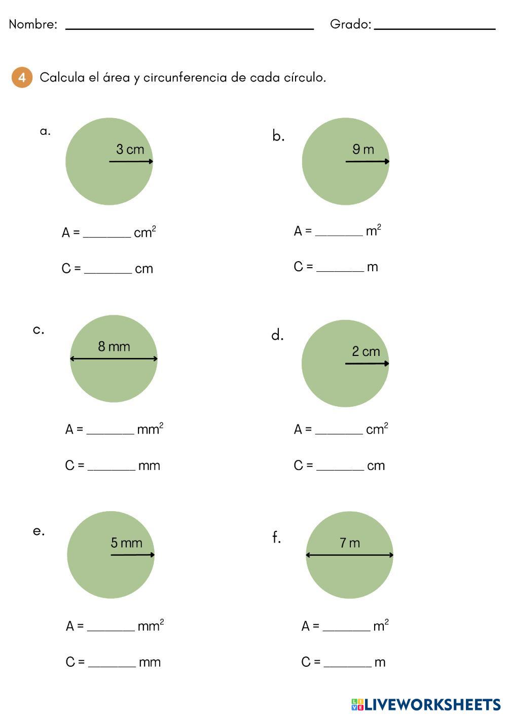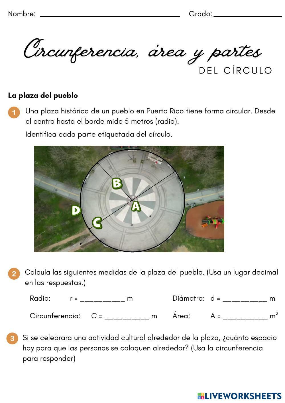 Calcular área y circunferencia del círculo. Identificar partes del círculo.