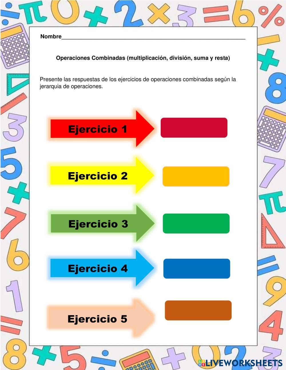 Presente las respuestas de las operaciones combinadas de multiplicación, división, suma y resta, respetando la jerarquia de operaciones.