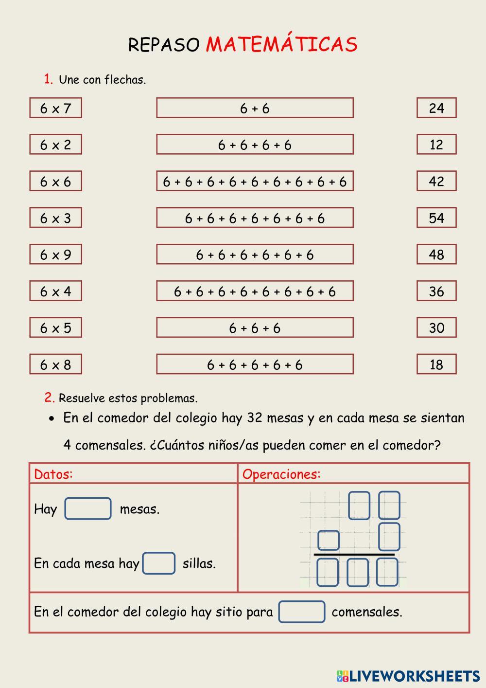 Ficha para trabajar la multiplicación con varios problemas para resolver.