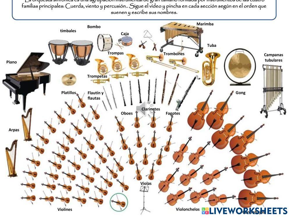 Ficha para completar el nombre de las secciones orquestales y su orden de audición