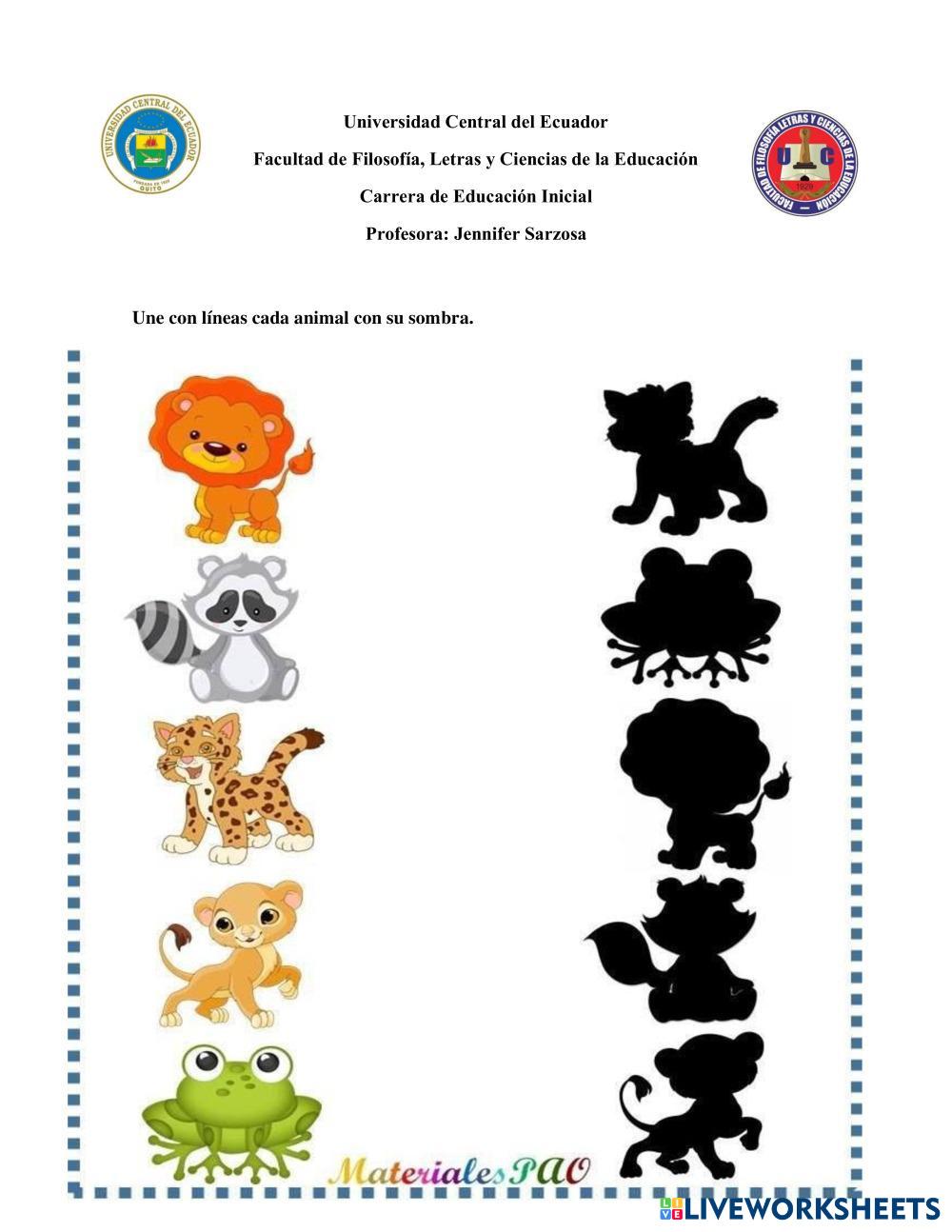 Created byjennifer Dayanara Sarzosa Ayala Niños y Niñas Animales salvajes Age 3-9 level: 2 Spanish Author's Instructions My Google Classroom Courses × 0 classes selected (0 students total) Quick Access Select all classes (0 classes) All Classes Loading courses... Cancel Share Share to selected Course __COURSE_NAME__ __STUDENT_NAME__ (__STUDENT_EMAIL__) Animales sus sombras Download Worksheet Validation Check my answers Emails my answers to my teacher Full name Group/level School subject Teacher's email or key code Close Submit Validating worksheet... (12) Your answers have been sent to your teacher. Good luck! OK We encountered an error submitting your answers. Please try again. OK Advertisement | Go Ad Free Created byjennifer Dayanara Sarzosa Ayala Niños y Niñas Animales salvajes Age 3-9 level: 2 Spanish Author's Instructions