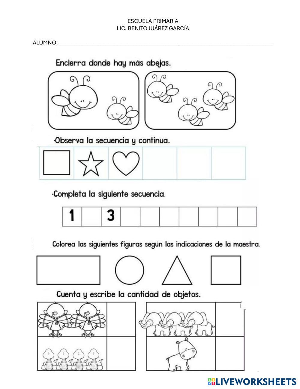 Created byELSA LIZETH MONSALVO ORTEGA numeros Escritura de numeros Age 6-12 level: 1 Spanish Author's Instructions Resuelve lo que se te pide. My Google Classroom Courses × 0 classes selected (0 students total) Quick Access Select all classes (0 classes) All Classes Loading courses... Cancel Share Share to selected Course __COURSE_NAME__ __STUDENT_NAME__ (__STUDENT_EMAIL__) Evaluación Download Worksheet Validation Check my answers Emails my answers to my teacher Full name Group/level School subject Teacher's email or key code Close Submit Validating worksheet... (12) Your answers have been sent to your teacher. Good luck! OK We encountered an error submitting your answers. Please try again. OK Advertisement | Go Ad Free Created byELSA LIZETH MONSALVO ORTEGA numeros Escritura de numeros Age 6-12 level: 1 Spanish Author's Instructions Resuelve lo que se te pide.