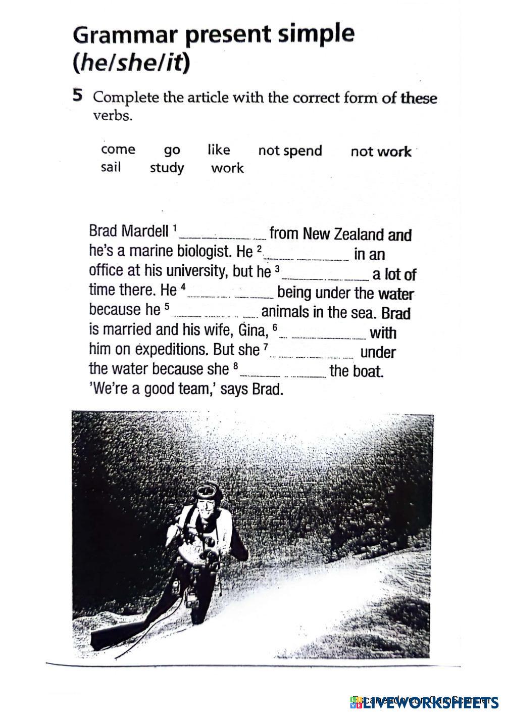Created byCandela Villafañes Present S Grammar Age 18+ level: A1 Spanish Author's Instructions My Google Classroom Courses × 0 classes selected (0 students total) Quick Access Select all classes (0 classes) All Classes Loading courses... Cancel Share Share to selected Course __COURSE_NAME__ __STUDENT_NAME__ (__STUDENT_EMAIL__) Present Simple (Third) Download Worksheet Validation Check my answers Emails my answers to my teacher Full name Group/level School subject Teacher's email or key code Close Submit Validating worksheet... (12) Your answers have been sent to your teacher. Good luck! OK We encountered an error submitting your answers. Please try again. OK Advertisement | Go Ad Free Created byCandela Villafañes Present S Grammar Age 18+ level: A1 Spanish Author's Instructions