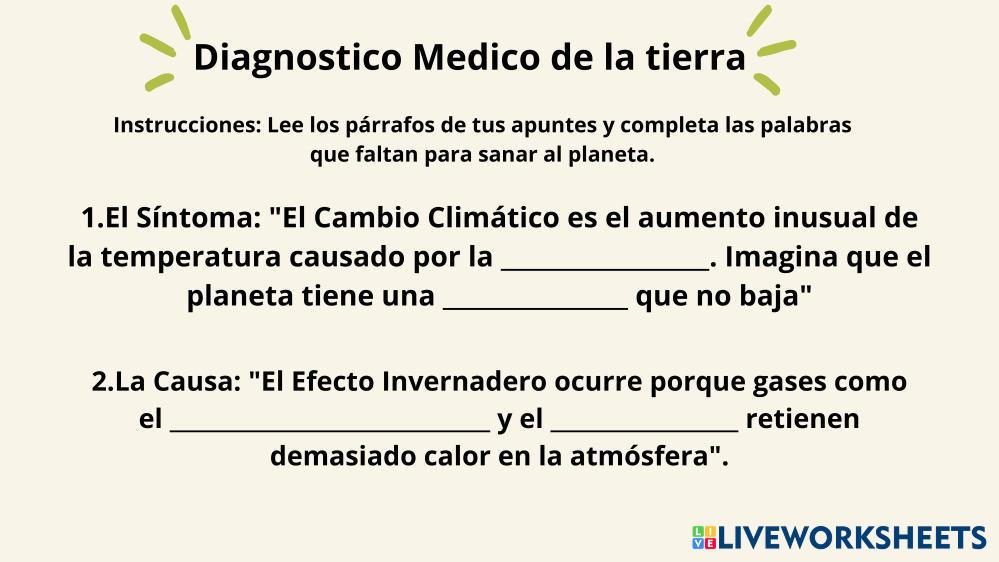 Lee los párrafos de tus apuntes y completa las palabras que faltan para sanar al planeta.