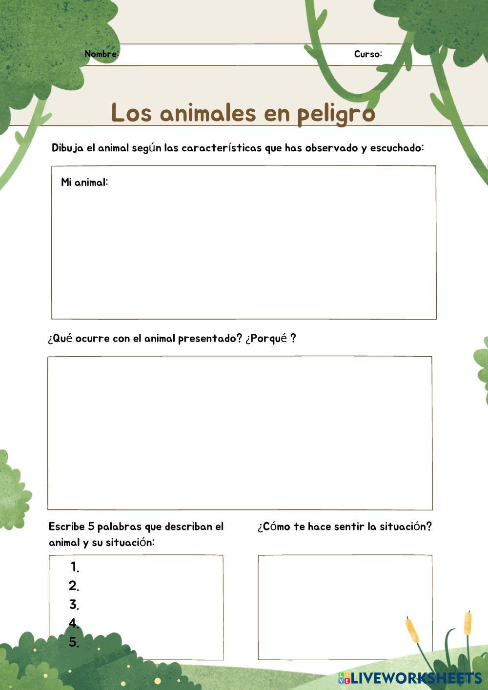 Rellena la ficha con la información que has obtenido con la visualización de los dos vídeos: ¡S.O.S! animales en peligro y el animal que te ha sido asignado.