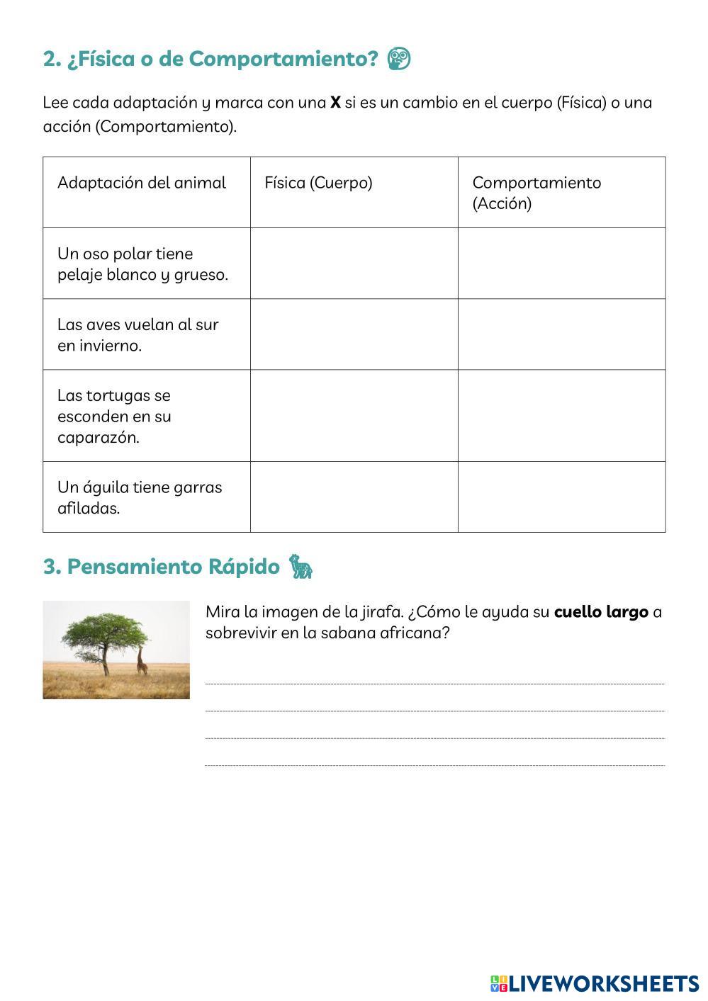 A. Identifica las adaptaciones de supervivencia de estos animales.