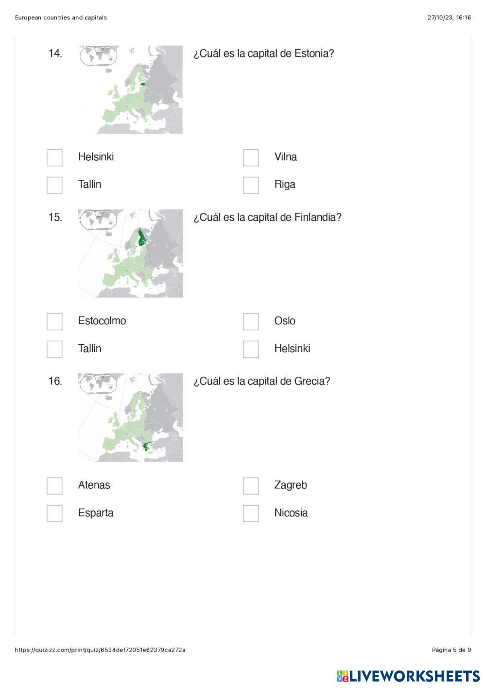 Capital y países