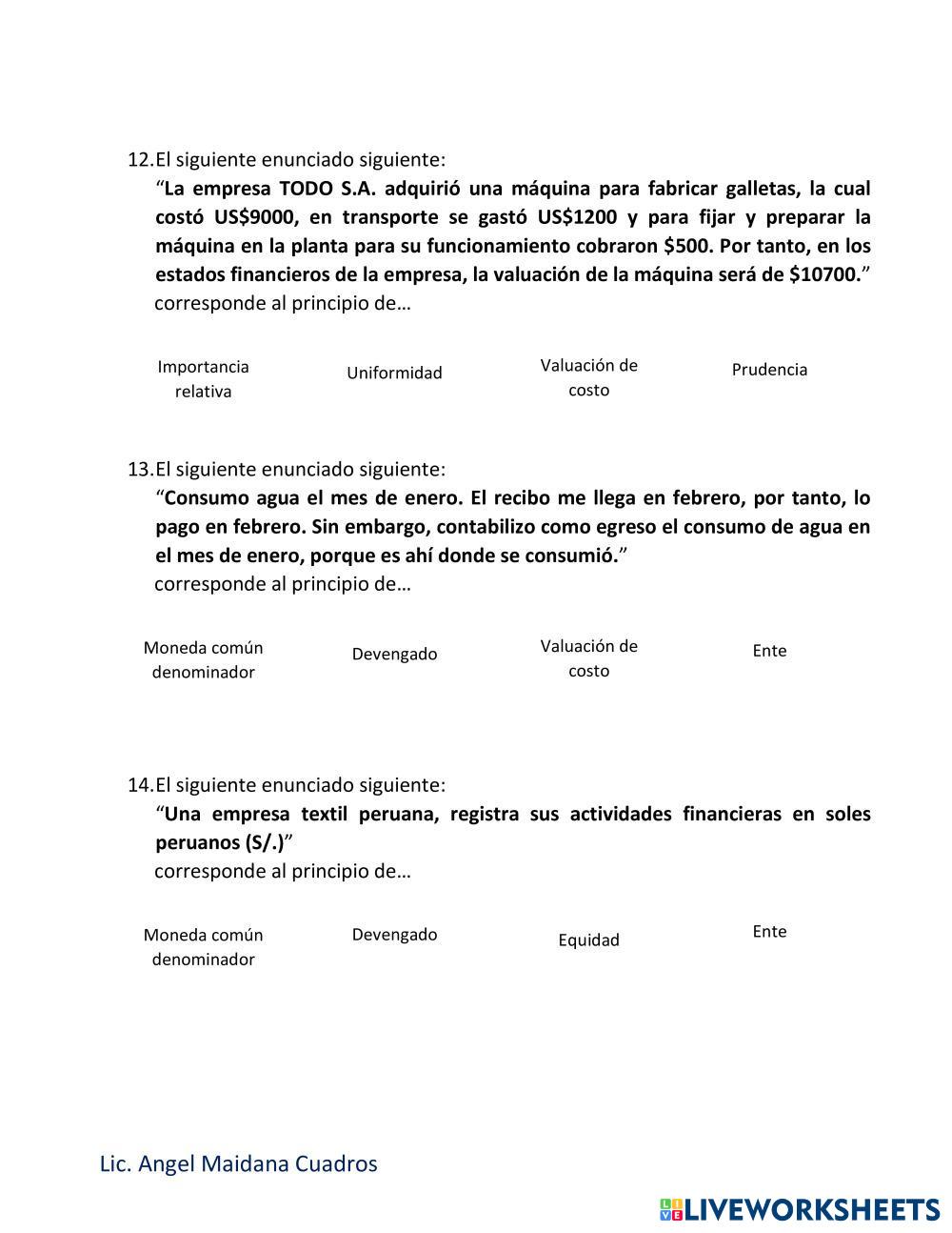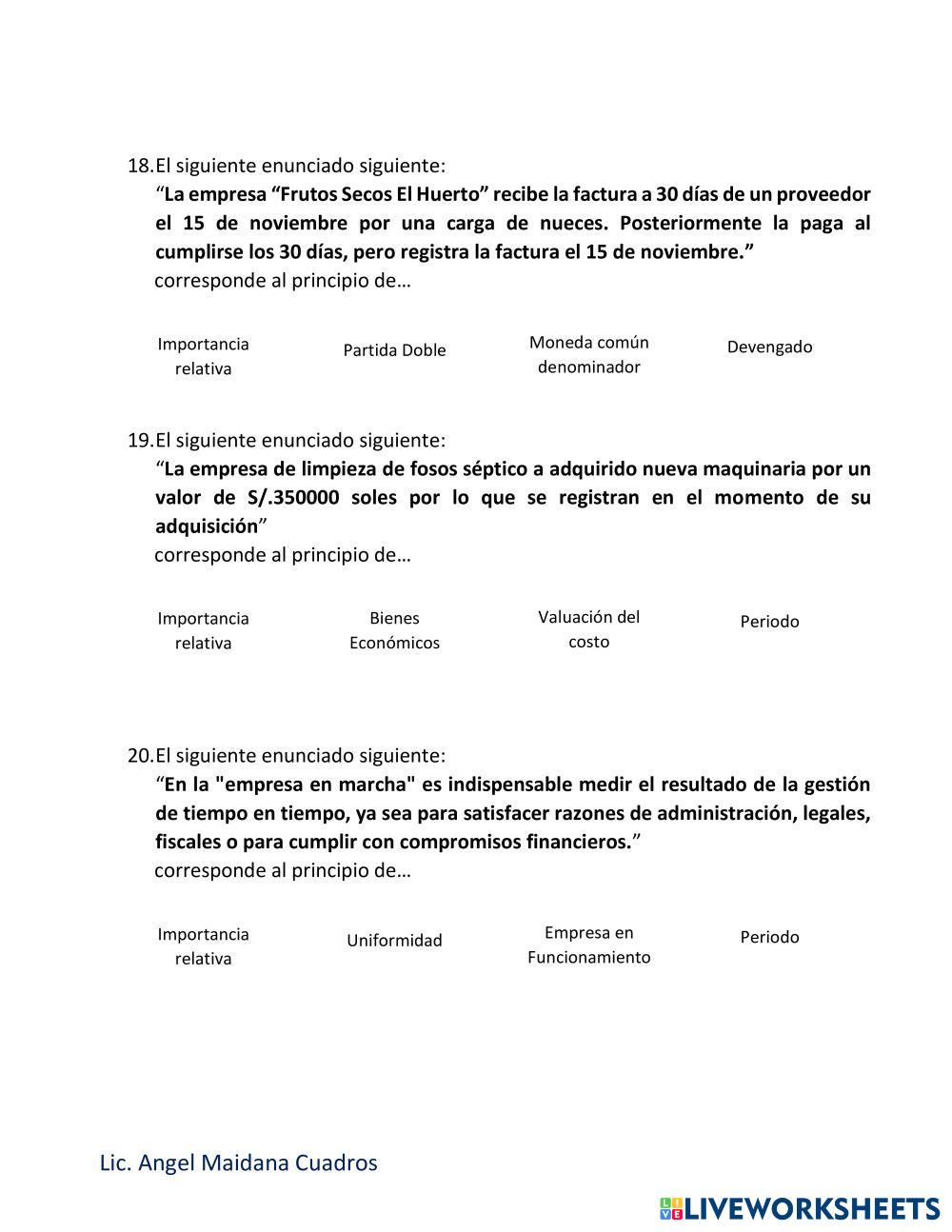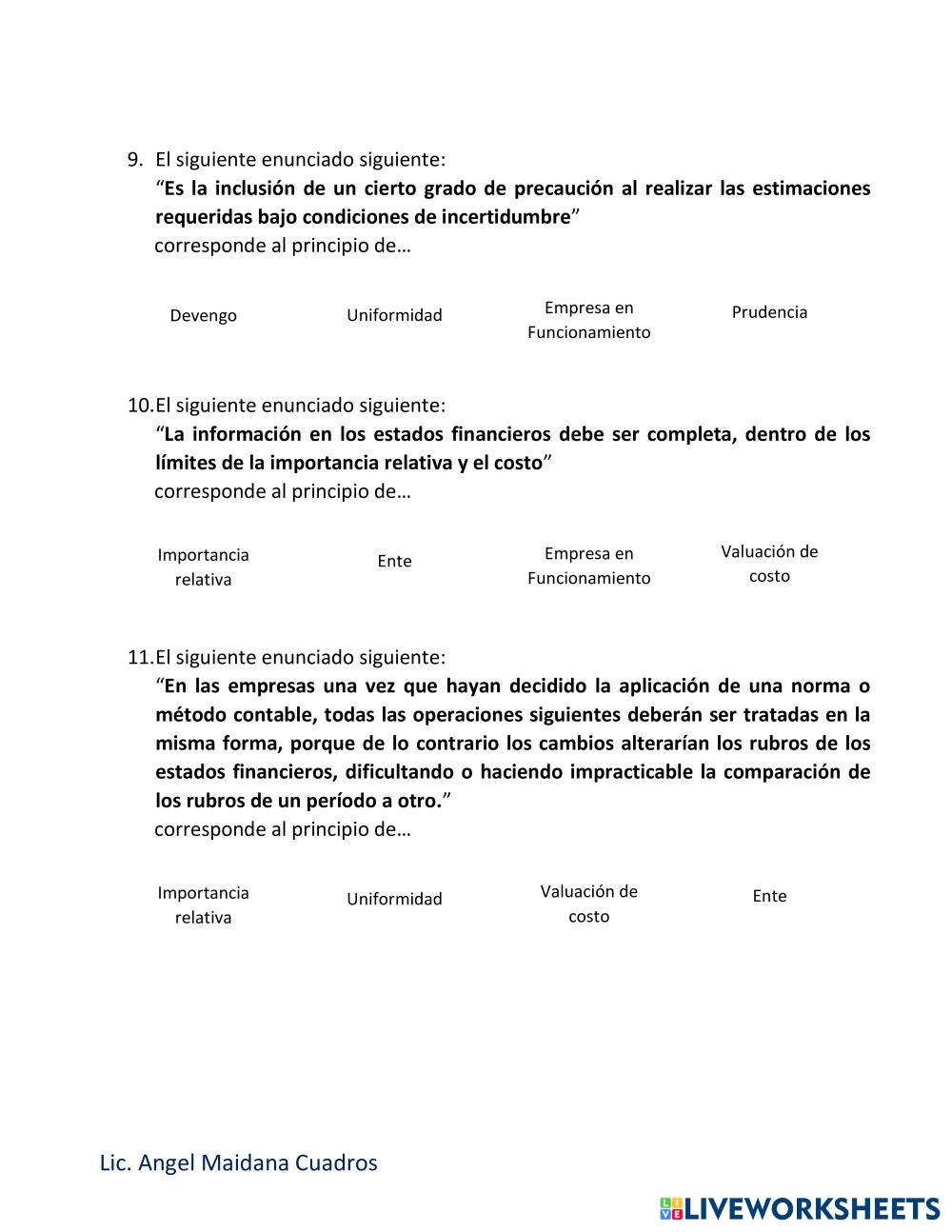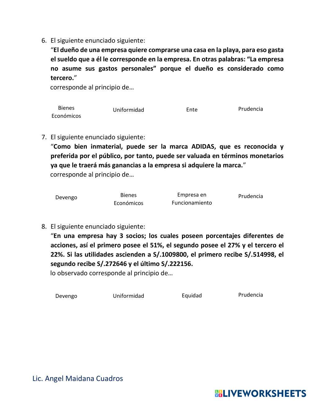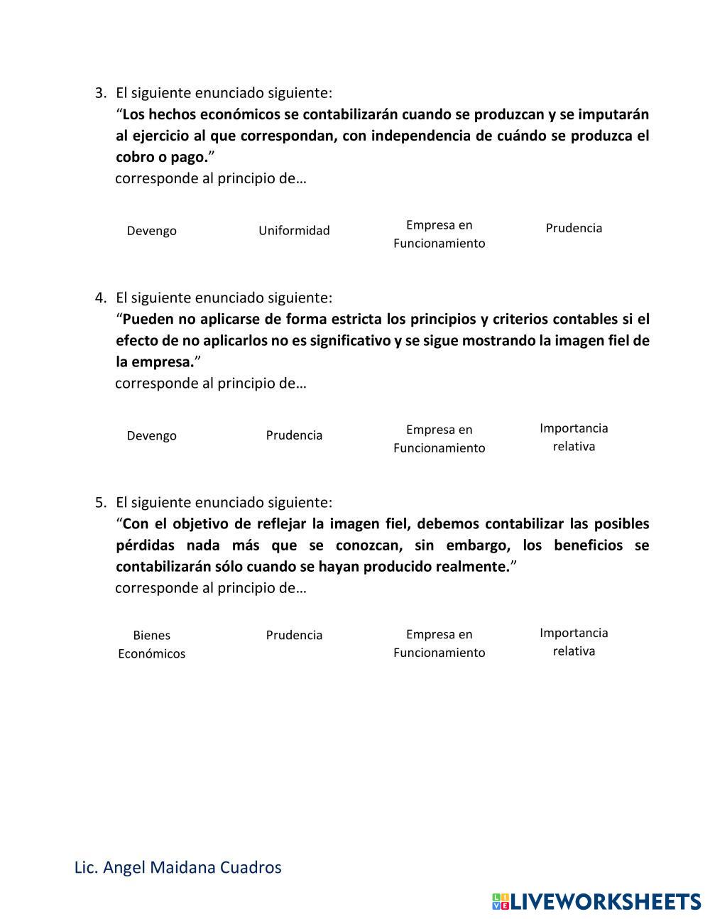 Reconoce los principios contables involucrados en cada caso