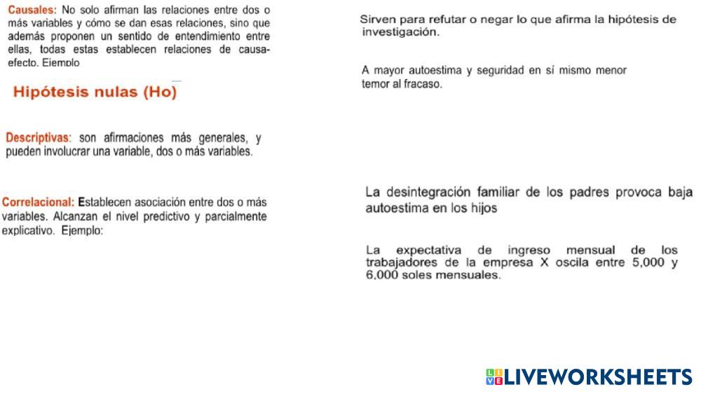 Arrastra el tipo de hipótesis donde corresponde de acuerdo a su definición o descripción
