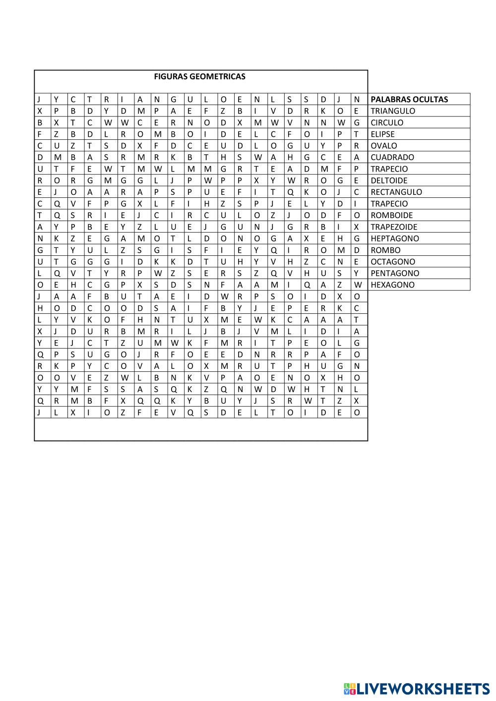 Encontrar las diferentes figuras geometricas dentro de la sopa de letras
