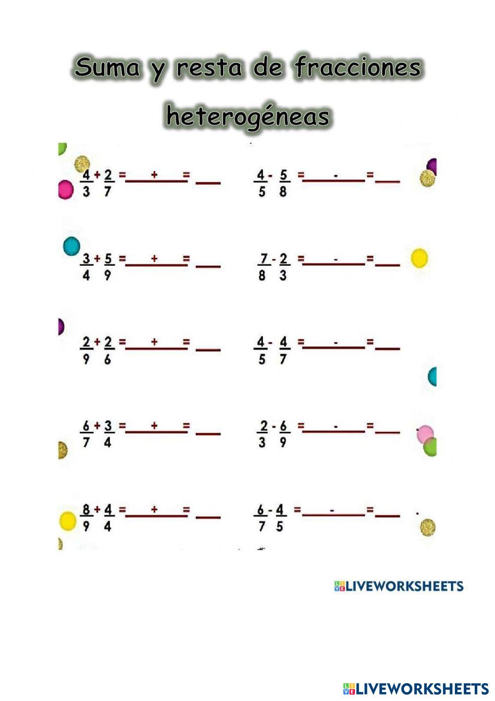 Suma y resta de fraccionarios