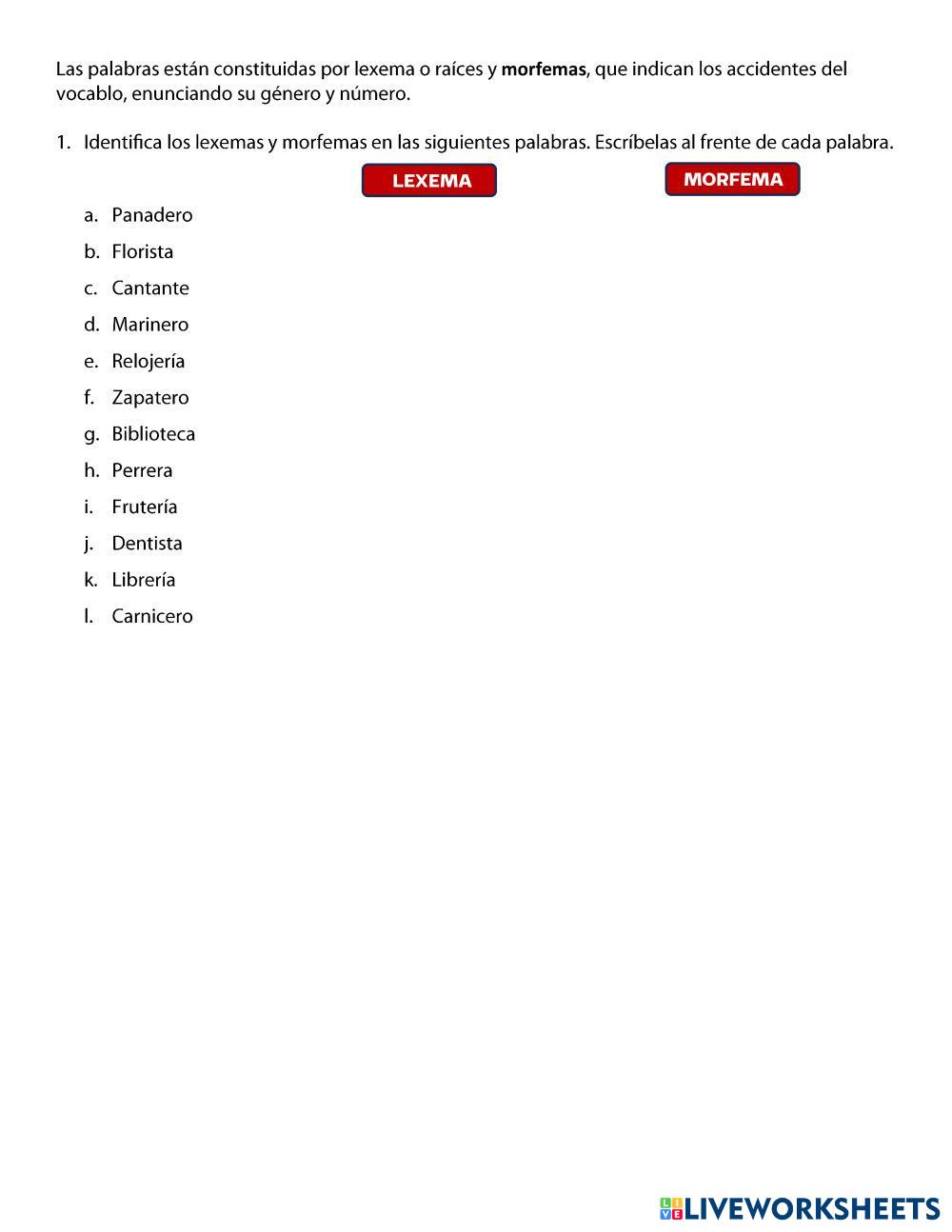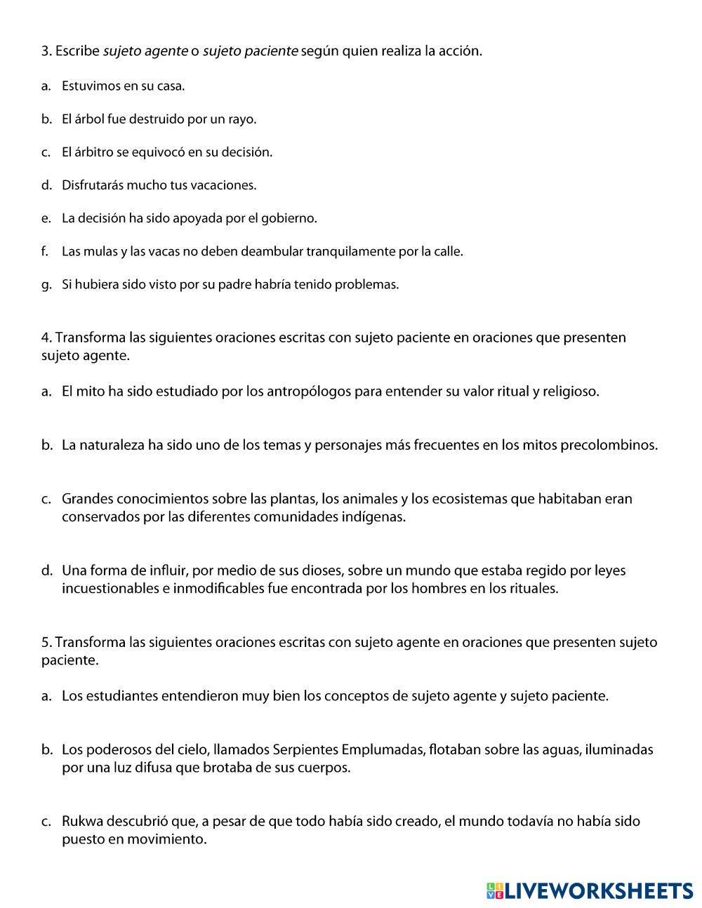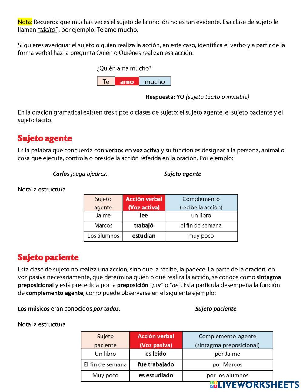 Realiza las siguientes actividades sobre sujeto agente y paciente. Lexema y morfema