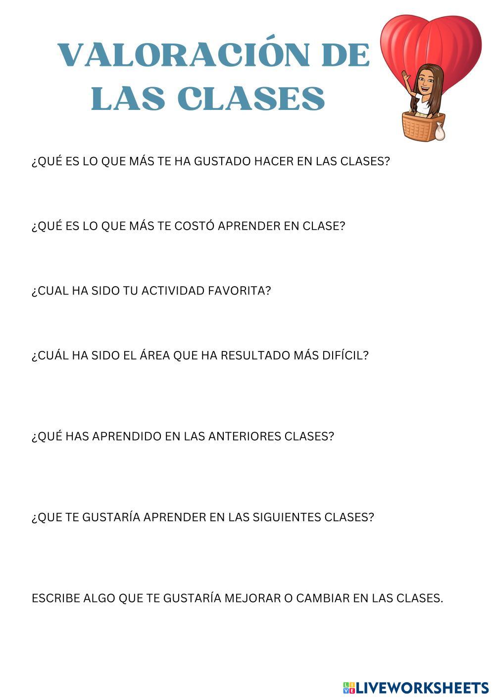 Created byROCIO TORRES MEDINA Todas Autoevaluación Age 5+ level: PRIMARIA Spanish Author's Instructions My Google Classroom Courses × 0 classes selected (0 students total) Quick Access Select all classes (0 classes) All Classes Loading courses... Cancel Share Share to selected Course __COURSE_NAME__ __STUDENT_NAME__ (__STUDENT_EMAIL__) Valoración clase Download Worksheet Validation Check my answers Emails my answers to my teacher Full name Group/level School subject Teacher's email or key code Close Submit Validating worksheet... (12) Your answers have been sent to your teacher. Good luck! OK We encountered an error submitting your answers. Please try again. OK Advertisement | Go Ad Free Created byROCIO TORRES MEDINA Todas Autoevaluación Age 5+ level: PRIMARIA Spanish Author's Instructions