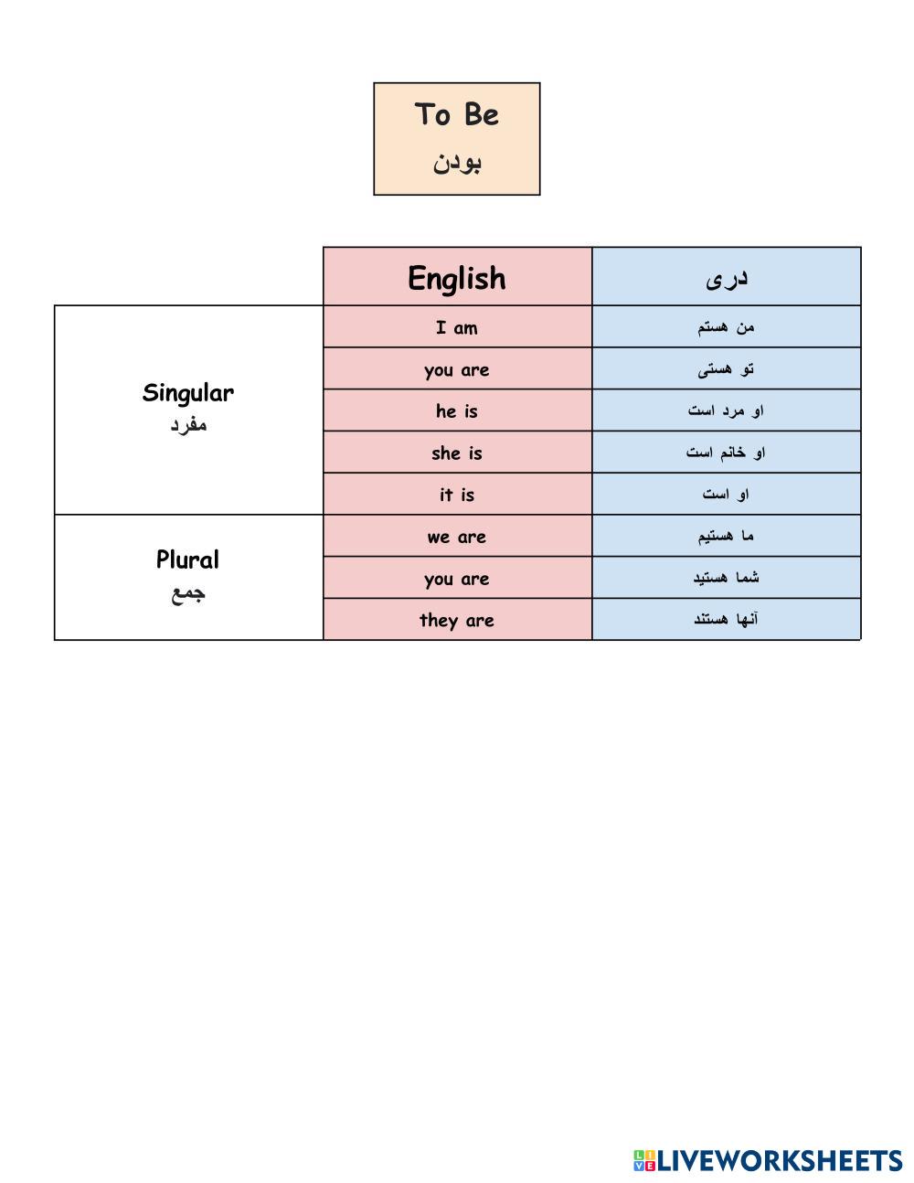 Created by kathym616 ESL Students practice the English pronouns and the verb to be. Age 3-16 level: Elementary Persian (Farsi) Author's Instructions My Google Classroom Courses × 0 classes selected (0 students total) Quick Access Select all classes (0 classes) All Classes Loading courses... Cancel Share Share to selected Course __COURSE_NAME__ __STUDENT_NAME__ (__STUDENT_EMAIL__) Pronouns and To Be Homework Download Worksheet Validation Check my answers Emails my answers to my teacher Full name Group/level School subject Teacher's email or key code Close Submit Validating worksheet... (12) Your answers have been sent to your teacher. Good luck! OK We encountered an error submitting your answers. Please try again. OK Advertisement | Go Ad Free Created by kathym616 ESL Students practice the English pronouns and the verb to be. Age 3-16 level: Elementary Persian (Farsi) Author's Instructions