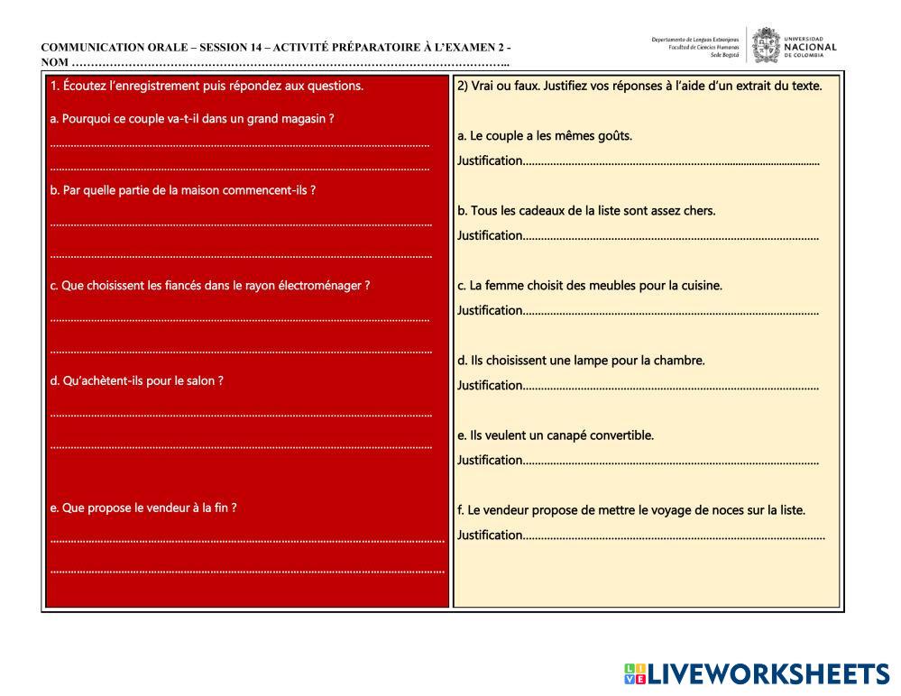 Activité proposée aux étudiants de Français, niveau A2, pour s'entraîner à la compréhension de l'oral.