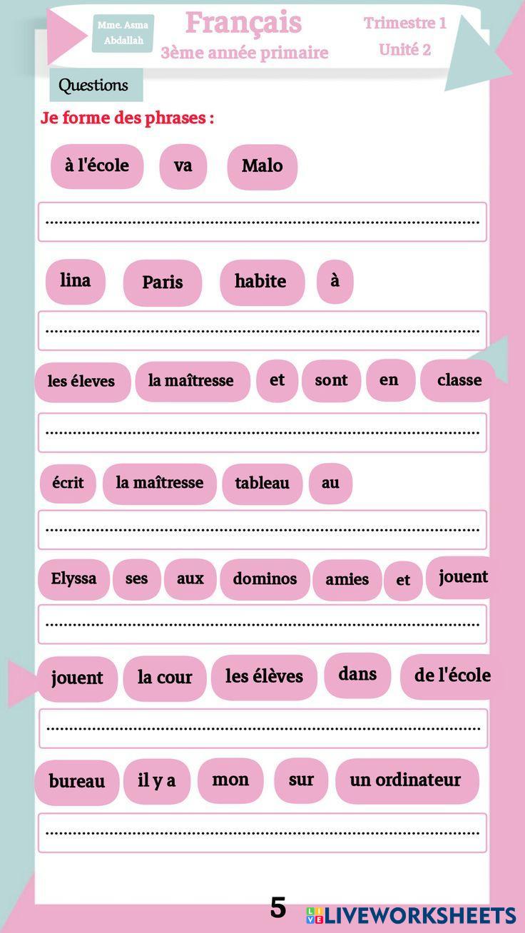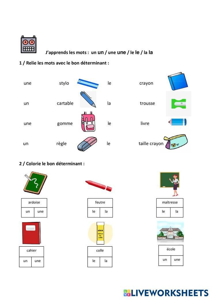 Created by fehrinour ESL French A1 Vocabulary French Author's Instructions suivre la question et faire la tàche demandé My Google Classroom Courses × 0 classes selected (0 students total) Quick Access Select all classes (0 classes) All Classes Loading courses... Cancel Share Share to selected Course __COURSE_NAME__ __STUDENT_NAME__ (__STUDENT_EMAIL__) exercices Download Worksheet Validation Check my answers Emails my answers to my teacher Full name Group/level School subject Teacher's email or key code Close Submit Validating worksheet... (12) Your answers have been sent to your teacher. Good luck! OK We encountered an error submitting your answers. Please try again. OK Advertisement | Go Ad Free Created by fehrinour ESL French A1 Vocabulary French Author's Instructions suivre la question et faire la tàche demandé Explore Worksheets Weather words ESL A1 Weather words Vocabulary - ESL Match the French words to the English words. Weather words ESL A1 Weather words Vocabulary - ESL Match the French words to the English words. les parties du corps ESL A1 les parties du corps Vocabulary - ESL Regarde l'image, puis glisse et dépose chaque mot à sa place." Unité 4 À table ESL A1 Unité 4 À table Vocabulary - ESL Complète le test
