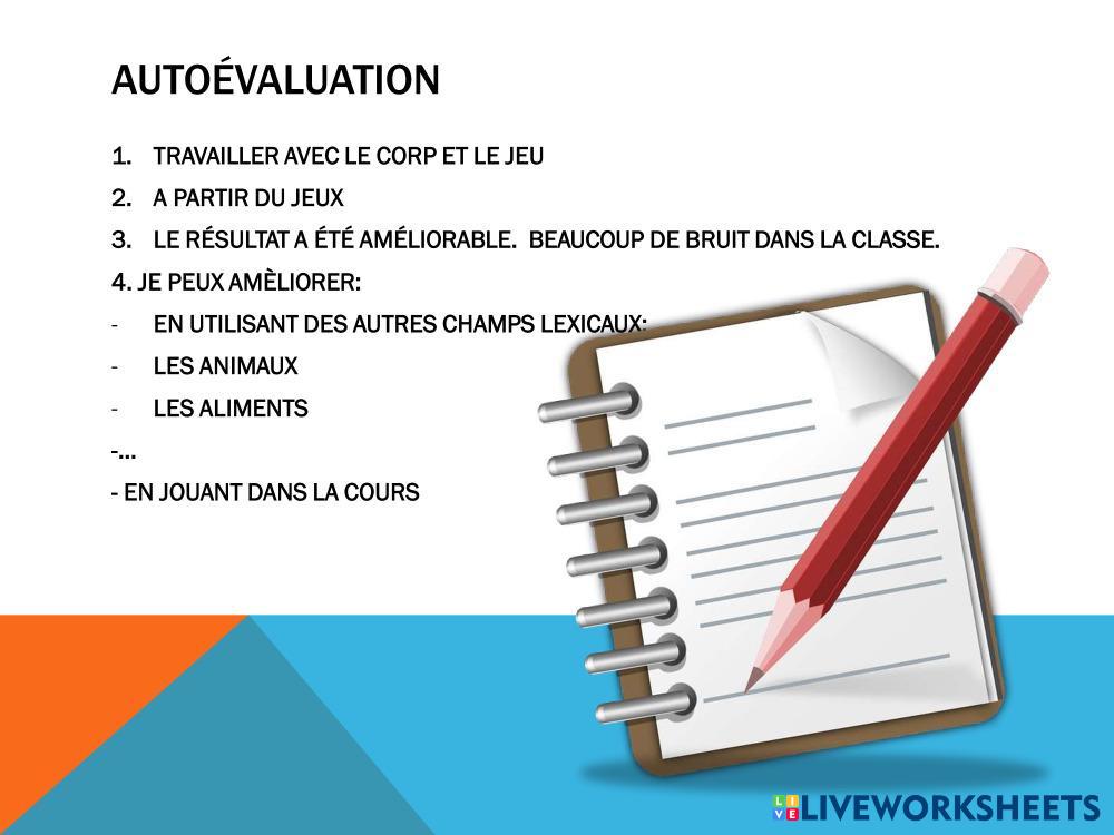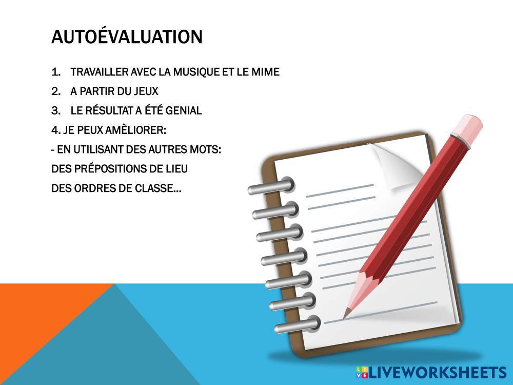 Created byInmaculada Carmona Rodríguez Français Langue Étrangère (FLE) Les jeux Age 11-15 level: 5º-6º PRIMARIA French Author's Instructions My Google Classroom Courses × 0 classes selected (0 students total) Quick Access Select all classes (0 classes) All Classes Loading courses... Cancel Share Share to selected Course __COURSE_NAME__ __STUDENT_NAME__ (__STUDENT_EMAIL__) TAREA PRÁCTICA DE UNA CLASE EN FRANCÉS Download Worksheet Validation Check my answers Emails my answers to my teacher Full name Group/level School subject Teacher's email or key code Close Submit Validating worksheet... (12) Your answers have been sent to your teacher. Good luck! OK We encountered an error submitting your answers. Please try again. OK Advertisement | Go Ad Free Created byInmaculada Carmona Rodríguez Français Langue Étrangère (FLE) Les jeux Age 11-15 level: 5º-6º PRIMARIA French Author's Instructions