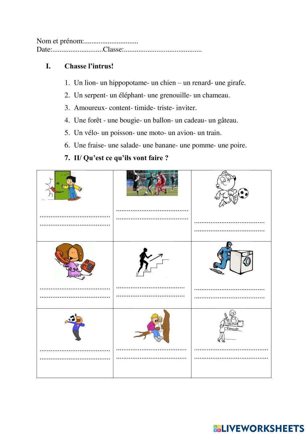 Created byPham Thi Thoa Futur proche Exercices d'entrainement Age 7-12 level: A1 French Author's Instructions My Google Classroom Courses × 0 classes selected (0 students total) Quick Access Select all classes (0 classes) All Classes Loading courses... Cancel Share Share to selected Course __COURSE_NAME__ __STUDENT_NAME__ (__STUDENT_EMAIL__) Petite Grenouille 1-Conte E Download Worksheet Validation Check my answers Emails my answers to my teacher Full name Group/level School subject Teacher's email or key code Close Submit Validating worksheet... (12) Your answers have been sent to your teacher. Good luck! OK We encountered an error submitting your answers. Please try again. OK Advertisement | Go Ad Free Created byPham Thi Thoa Futur proche Exercices d'entrainement Age 7-12 level: A1 French Author's Instructions