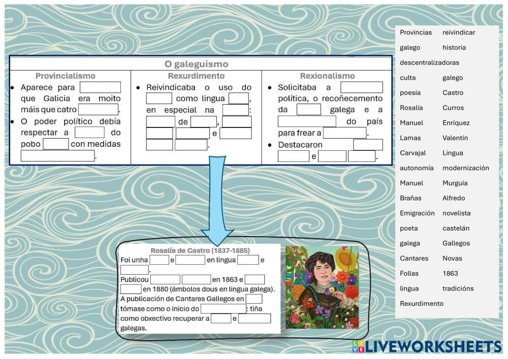 Created by LuciaHR Social Studies Elementary 5th grade History Galician Author's Instructions Cubre os ocos coas palabras do cadro dereito. My Google Classroom Courses × 0 classes selected (0 students total) Quick Access Select all classes (0 classes) All Classes Loading courses... Cancel Share Share to selected Course __COURSE_NAME__ __STUDENT_NAME__ (__STUDENT_EMAIL__) CCSS T4 Galicia S.XIX 2 Download Worksheet Validation Check my answers Emails my answers to my teacher Full name Group/level School subject Teacher's email or key code Close Submit Validating worksheet... (12) Your answers have been sent to your teacher. Good luck! OK We encountered an error submitting your answers. Please try again. OK Advertisement | Go Ad Free Created by LuciaHR Social Studies Elementary 5th grade History Galician Author's Instructions Cubre os ocos coas palabras do cadro dereito. Explore Worksheets Spanish territories (16th and 17 centuries) Social Studies 5th grade Spanish territories (16th and 17 centuries) History - Social Studies Spanish territories (16th and 17 centuries) CCSS T4 Galicia S.XIX 2 Social Studies 5th grade CCSS T4 Galicia S.XIX 2 History - Social Studies Completa os ocos coas palabras do cadro dereito. CCSS T4 Galicia S.XIX 1 Social Studies 5th grade CCSS T4 Galicia S.XIX 1 History - Social Studies Escribe nos ocos as palabras do cadro da dereita. PRUEBA MÚSICA Social Studies 5th grade PRUEBA MÚSICA History - Social Studies RELLENA LAS NOTAS