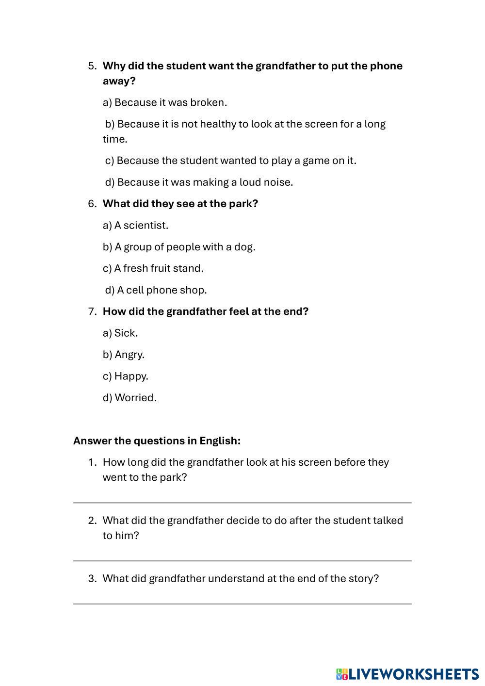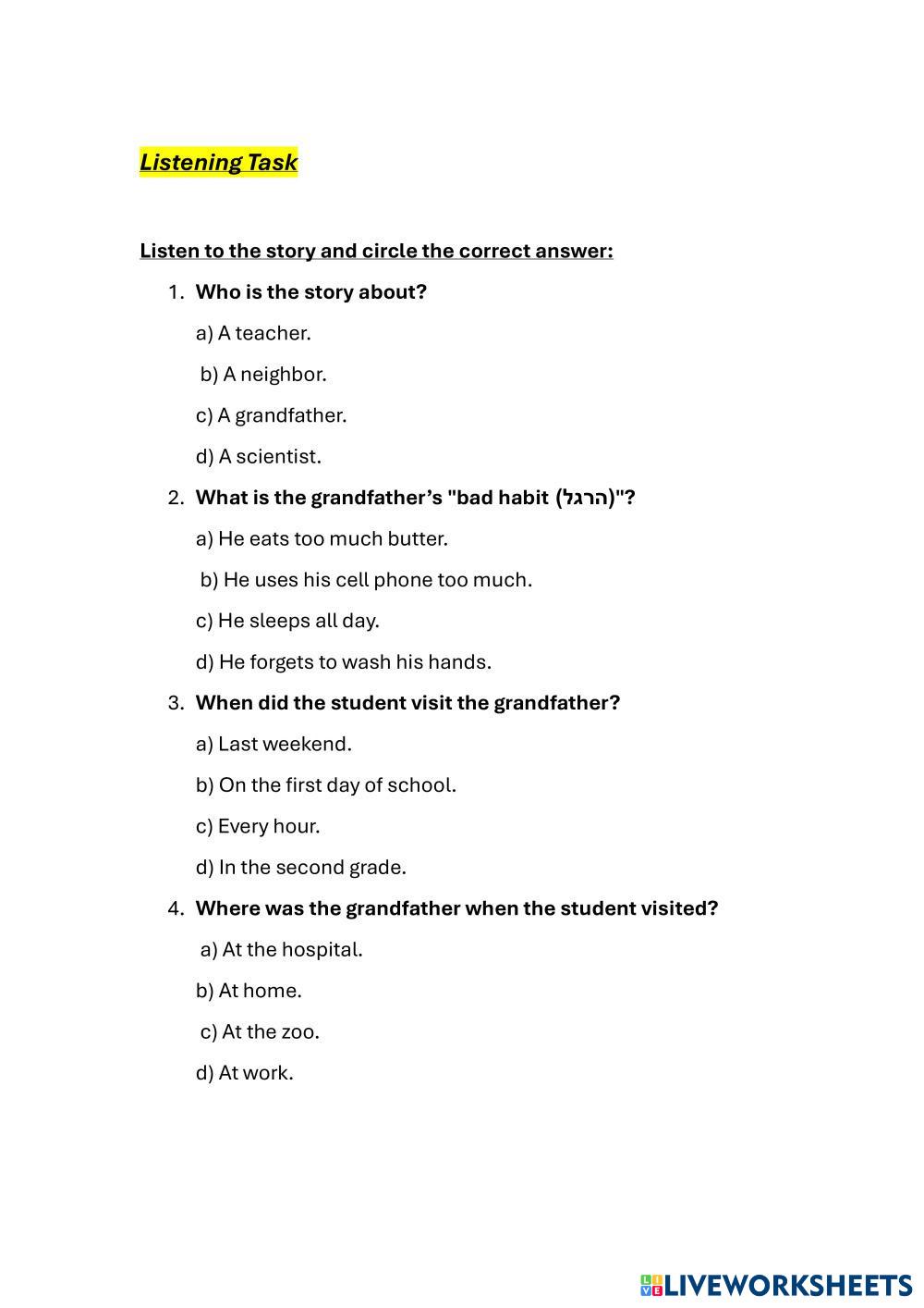 Listen to the story and circle the correct answer: