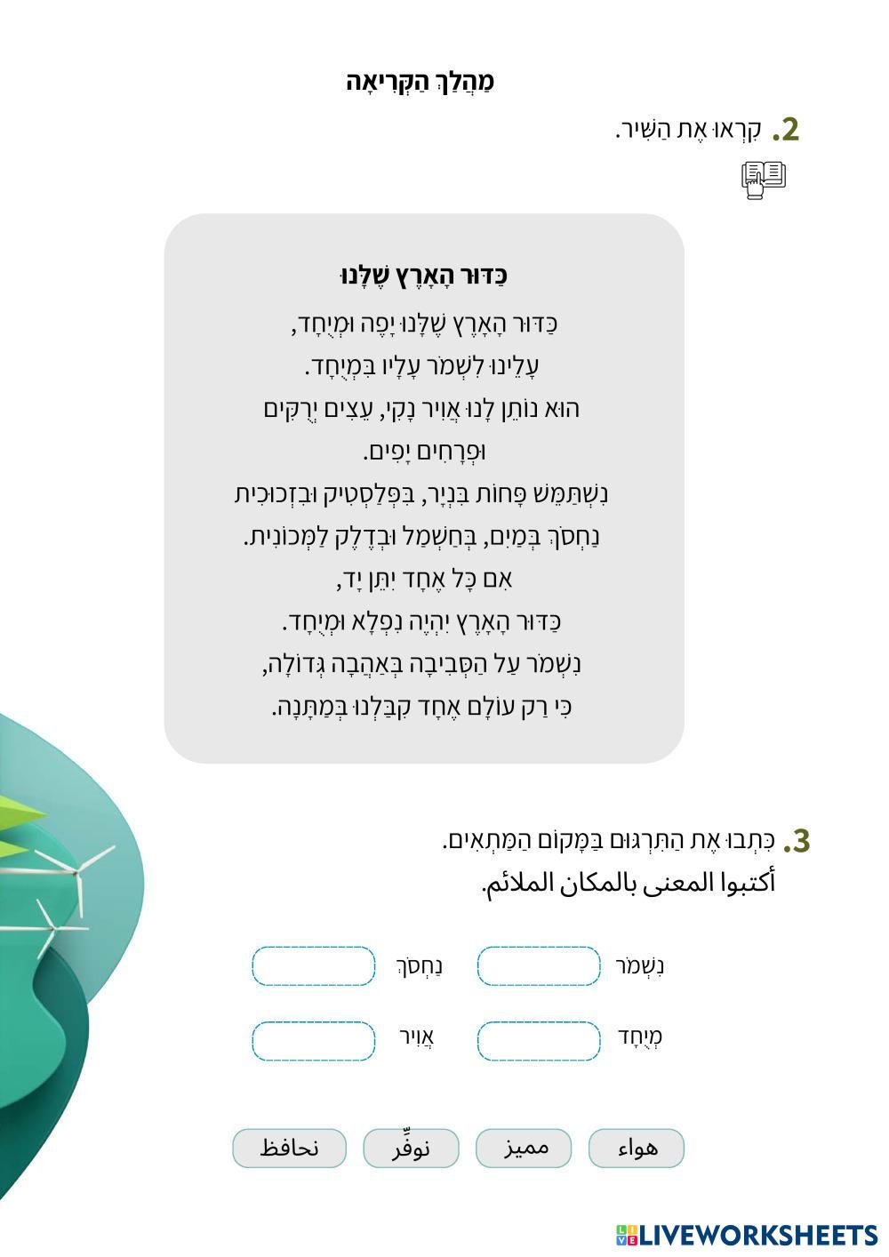 Created by sujoodahmad ESL A2 Vocabulary Hebrew (modern) Author's Instructions שכבה ד My Google Classroom Courses × 0 classes selected (0 students total) Quick Access Select all classes (0 classes) All Classes Loading courses... Cancel Share Share to selected Course __COURSE_NAME__ __STUDENT_NAME__ (__STUDENT_EMAIL__) איכות הסביבה Download Worksheet Validation Check my answers Emails my answers to my teacher Full name Group/level School subject Teacher's email or key code Close Submit Validating worksheet... (12) Your answers have been sent to your teacher. Good luck! OK We encountered an error submitting your answers. Please try again. OK Advertisement | Go Ad Free Created by sujoodahmad ESL A2 Vocabulary Hebrew (modern) Author's Instructions שכבה ד Explore Worksheets Sich vorstellen und kennenlernen ESL A2 Sich vorstellen und kennenlernen Vocabulary - ESL Erste Kontakte на німецькій (Перші контакти) Lerne, wie man sich auf Deutsch vorstellt und andere kennenlernt. Mache die Übungen unten. Навчися представлятися та знайомитися німецькою мовою. Виконай вправи нижче. KB4 Reinforcement worksheet U4 AFTER SCHOOL CLUB ESL A2 KB4 Reinforcement worksheet U4 AFTER SCHOOL CLUB Vocabulary - ESL Students decide which verb goes with each picture. They use the information to complete the text. Match the pictures with the verbs. Use the information to complete the text. Shopping Items A2 Connect the word with the picture ESL A2 Shopping Items A2 Connect the word with the picture Vocabulary - ESL Connect the word to the picture. Jet 2 Review ESL A2 Jet 2 Review Vocabulary - ESL Complete the worksheet