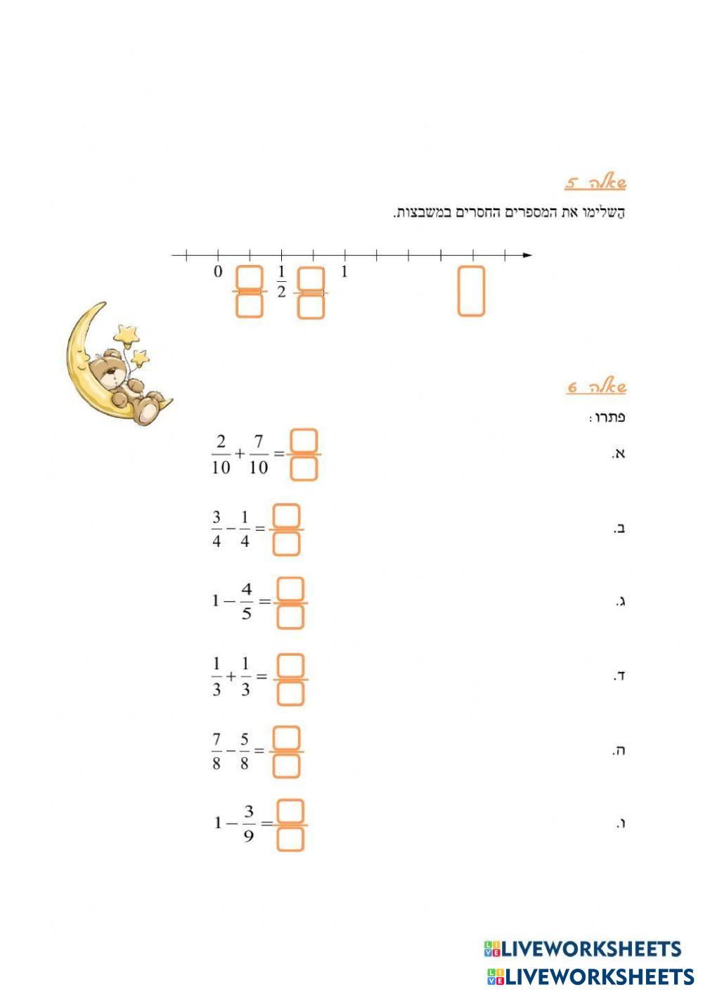Created byDANIEL Math Elementary 5th grade Fractions and Decimals Hebrew (modern) Author's Instructions ענו על השאלות הבאות My Google Classroom Courses × 0 classes selected (0 students total) Quick Access Select all classes (0 classes) All Classes Loading courses... Cancel Share Share to selected Course __COURSE_NAME__ __STUDENT_NAME__ (__STUDENT_EMAIL__) שברים כיתה ה' Download Worksheet Validation Check my answers Emails my answers to my teacher Full name Group/level School subject Teacher's email or key code Close Submit Validating worksheet... (12) Your answers have been sent to your teacher. Good luck! OK We encountered an error submitting your answers. Please try again. OK Advertisement | Go Ad Free Created byDANIEL Math Elementary 5th grade Fractions and Decimals Hebrew (modern) Author's Instructions ענו על השאלות הבאות Explore Worksheets שברים כיתה ה'3 Math 5th grade שברים כיתה ה'3 Fractions and Decimals - Math ענו על השאלות הבאות שברים כיתה ה'2 Math 5th grade שברים כיתה ה'2 Fractions and Decimals - Math ענו על השאלות הבאות Fracciones como parte - todo - 6.° GRADO DE PRIMARIA Math 5th grade Fracciones como parte - todo - 6.° GRADO DE PRIMARIA Fractions and Decimals - Math Completa las actividades propuestas. Luego, presiona la palabra ´´Finalizar´´ que se encuentra en la parte inferior de la ficha. Finalmente, verifica tus respuestas. ورقة عمل أعداد عشرية للصف السادس Math 5th grade ورقة عمل أعداد عشرية للصف السادس Fractions and Decimals - Math عليكم تحضير ورقة وقلم قبل البدء بالحل