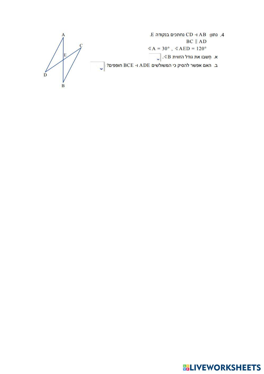 Created by 14582 Math Middle School 7th grade Geometry Hebrew (modern) Author's Instructions פתרו את התרגילים הבאים My Google Classroom Courses × 0 classes selected (0 students total) Quick Access Select all classes (0 classes) All Classes Loading courses... Cancel Share Share to selected Course __COURSE_NAME__ __STUDENT_NAME__ (__STUDENT_EMAIL__) חפיפת משולשים לכיתה ח -שקד ישראל - משימה 2 Download Worksheet Validation Check my answers Emails my answers to my teacher Full name Group/level School subject Teacher's email or key code Close Submit Validating worksheet... (12) Your answers have been sent to your teacher. Good luck! OK We encountered an error submitting your answers. Please try again. OK Advertisement | Go Ad Free Created by 14582 Math Middle School 7th grade Geometry Hebrew (modern) Author's Instructions פתרו את התרגילים הבאים Explore Worksheets الهدف الثاني الأشكال المتشابهة Math 7th grade الهدف الثاني الأشكال المتشابهة Geometry - Math الأشكال المتشابهة المثلثات ( البرهان الرياضي) Math 7th grade المثلثات ( البرهان الرياضي) Geometry - Math اكملي البرهان الآتي طالبتي العزيزة؟ المثلثات (تقييم الهدف الأول) Math 7th grade المثلثات (تقييم الهدف الأول) Geometry - Math :صنفي كل مثلث بالعتماد على الوزايا والأضلاع البرهان الرياضي Math 7th grade البرهان الرياضي Geometry - Math البرهان الرياضي للصف السابع