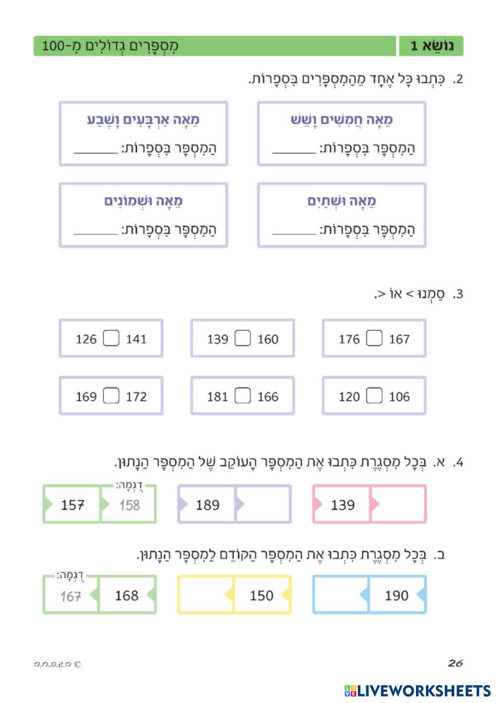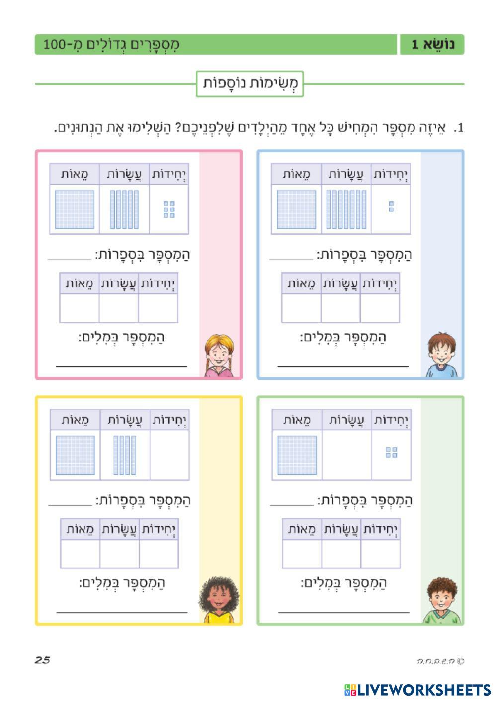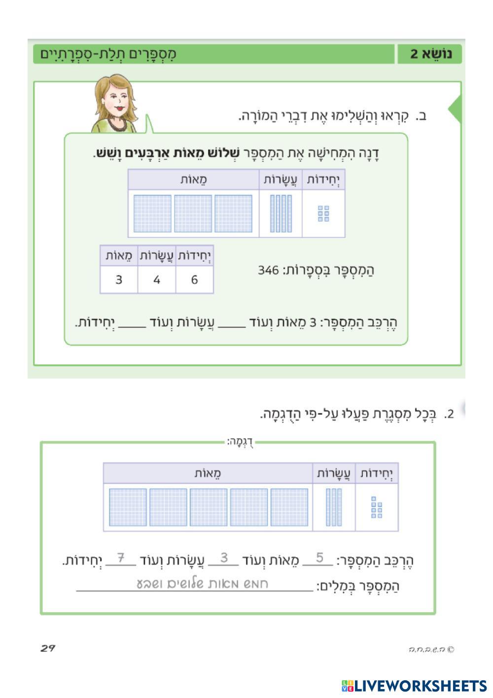 Created byNadine Ghantous Math Elementary 2nd grade Place Value Hebrew (modern) Author's Instructions פתרו את העמודים הבאים. My Google Classroom Courses × 0 classes selected (0 students total) Quick Access Select all classes (0 classes) All Classes Loading courses... Cancel Share Share to selected Course __COURSE_NAME__ __STUDENT_NAME__ (__STUDENT_EMAIL__) מספרים תלת ספרתיים Download Worksheet Validation Check my answers Emails my answers to my teacher Full name Group/level School subject Teacher's email or key code Close Submit Validating worksheet... (12) Your answers have been sent to your teacher. Good luck! OK We encountered an error submitting your answers. Please try again. OK Advertisement | Go Ad Free Created byNadine Ghantous Math Elementary 2nd grade Place Value Hebrew (modern) Author's Instructions פתרו את העמודים הבאים. Explore Worksheets اعداد ثلاثية المنزلة Math 2nd grade اعداد ثلاثية المنزلة Place Value - Math حلّوا الصّفحات التّالية. Decoration for Festivals Math 2nd grade Decoration for Festivals Place Value - Math Joyful Mathematics | Class 2 | Decoration for Festivals | Addition Suma ACS Math 2nd grade Suma ACS Place Value - Math Resuelve Suma ACS Math 2nd grade Suma ACS Place Value - Math Resuelve estas sumas