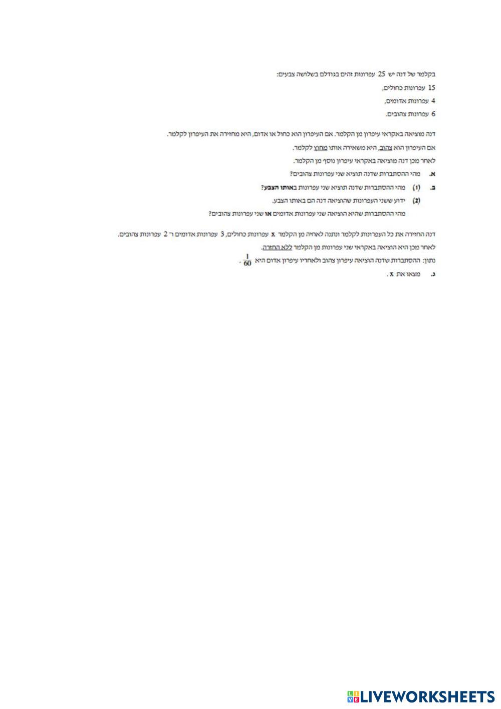 יש להקליד תשובה סופית במספרים ללא רווחים. נא להצטייד בכלי כתיבה ומחשבון