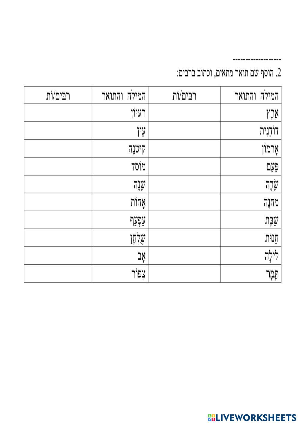Created bySimaSima Hebrew דקדוק Age 10-18 level: 7 Arabic Author's Instructions מילה וההפך יחיד רבים My Google Classroom Courses × 0 classes selected (0 students total) Quick Access Select all classes (0 classes) All Classes Loading courses... Cancel Share Share to selected Course __COURSE_NAME__ __STUDENT_NAME__ (__STUDENT_EMAIL__) hebrew Download Worksheet Validation Check my answers Emails my answers to my teacher Full name Group/level School subject Teacher's email or key code Close Submit Validating worksheet... (12) Your answers have been sent to your teacher. Good luck! OK We encountered an error submitting your answers. Please try again. OK Advertisement | Go Ad Free Created bySimaSima Hebrew דקדוק Age 10-18 level: 7 Arabic Author's Instructions מילה וההפך יחיד רבים