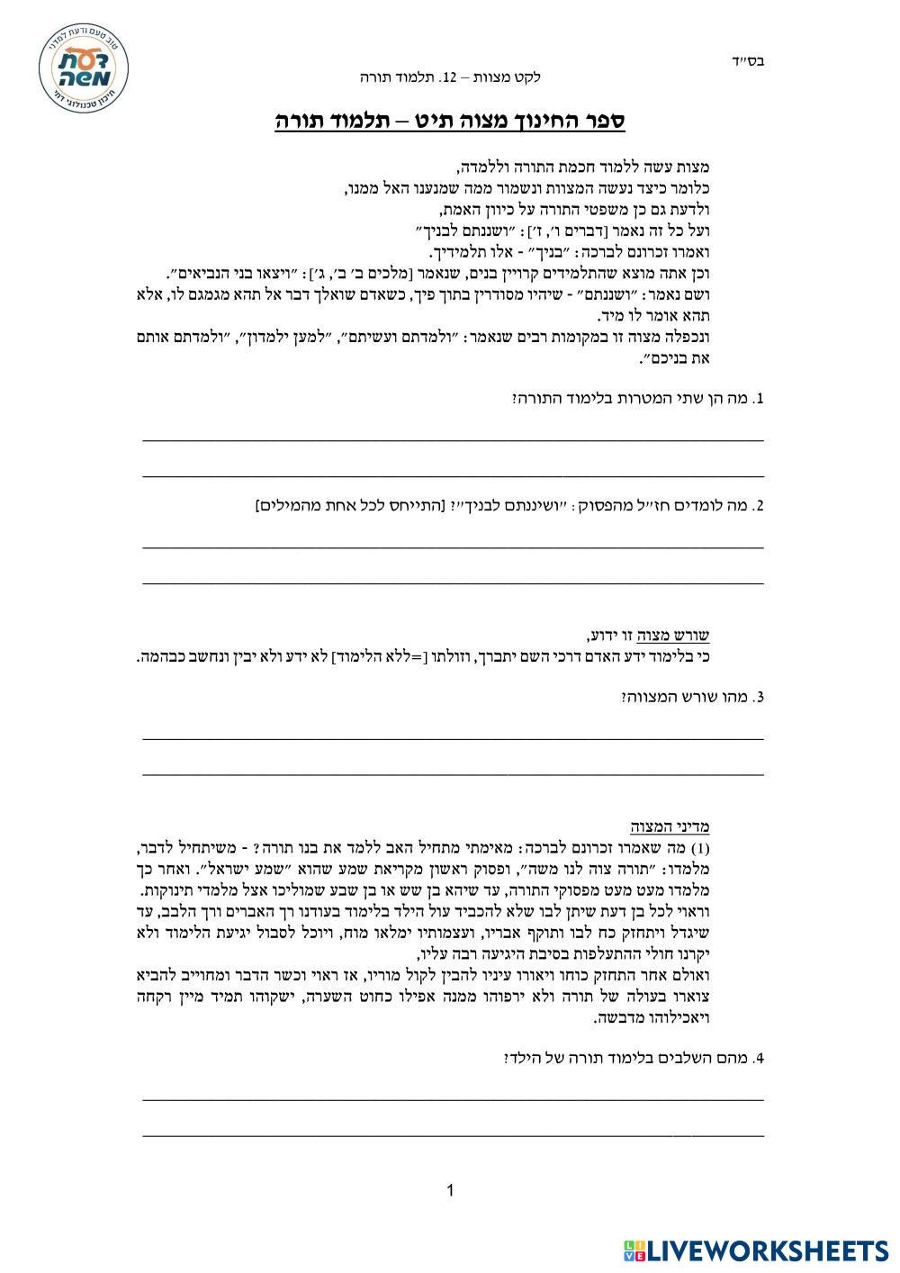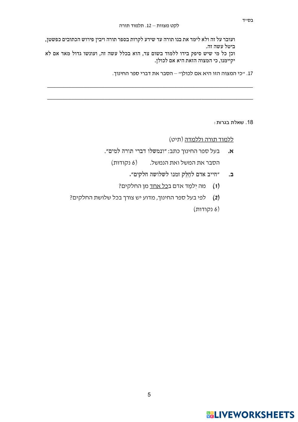 Created by 13526 Social Studies High School 12th grade Civics and Government Hebrew (modern) Author's Instructions מצוות My Google Classroom Courses × 0 classes selected (0 students total) Quick Access Select all classes (0 classes) All Classes Loading courses... Cancel Share Share to selected Course __COURSE_NAME__ __STUDENT_NAME__ (__STUDENT_EMAIL__) מצוות לימוד תורה Download Worksheet Validation Check my answers Emails my answers to my teacher Full name Group/level School subject Teacher's email or key code Close Submit Validating worksheet... (12) Your answers have been sent to your teacher. Good luck! OK We encountered an error submitting your answers. Please try again. OK Advertisement | Go Ad Free Created by 13526 Social Studies High School 12th grade Civics and Government Hebrew (modern) Author's Instructions מצוות Explore Worksheets peran pelaku ekonomi dalam kegiatan ekonomi Social Studies 12th grade peran pelaku ekonomi dalam kegiatan ekonomi Civics and Government - Social Studies isilah teka teki silamg ini dengan benar Evaluasi Kompetensi Manajerial Social Studies 12th grade Evaluasi Kompetensi Manajerial Civics and Government - Social Studies Gunakan bahan bacaan dalam modul pengelolaan sekolah sebagai acuan PENDIDIKAN PANCASILA Social Studies 12th grade PENDIDIKAN PANCASILA Civics and Government - Social Studies PILIHLAH JAWABAN YANG PALING BENAR Тест з діловодства Social Studies 12th grade Тест з діловодства Civics and Government - Social Studies Виконайте запропоновані завдання