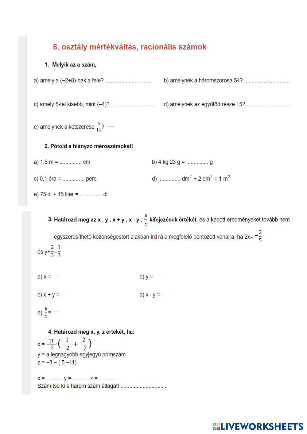 racionális számok, algebrai átalakítások, mértékátváltás