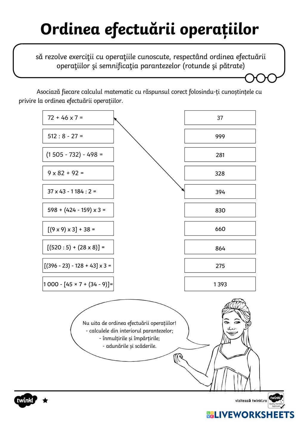 Kösd össze a műveletsort a megfelelő eredménnyel! Vigyázz a műveletek sorrendjére.