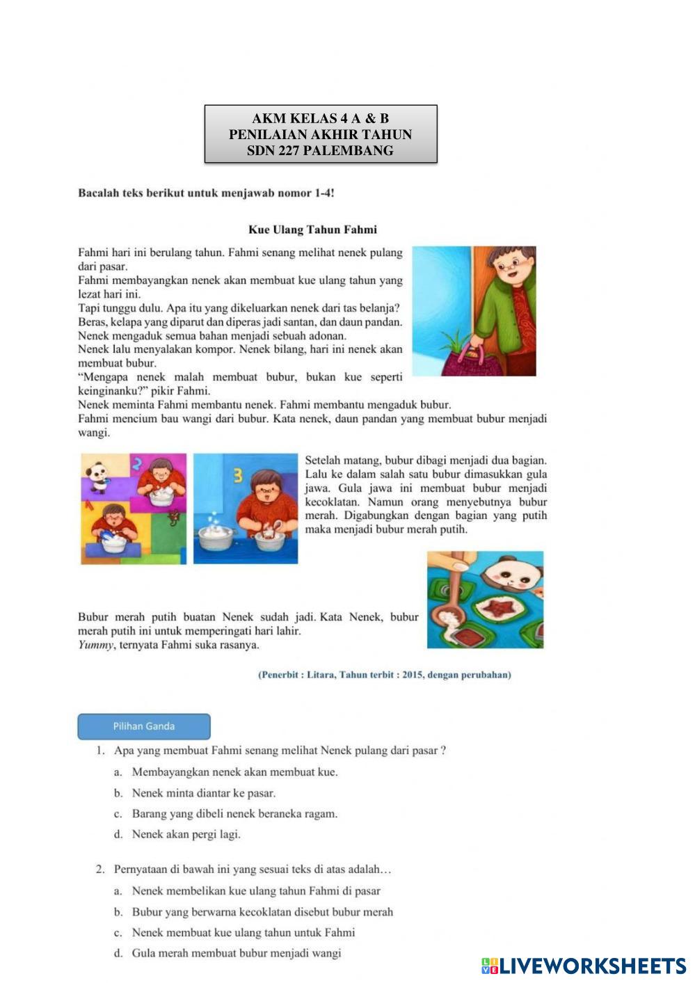 Created bydian maharani putri AKM Literasi AKM KELAS Age 9-13 level: 4 Indonesian Author's Instructions My Google Classroom Courses × 0 classes selected (0 students total) Quick Access Select all classes (0 classes) All Classes Loading courses... Cancel Share Share to selected Course __COURSE_NAME__ __STUDENT_NAME__ (__STUDENT_EMAIL__) SOAL AKM LITERASI Download Worksheet Validation Check my answers Emails my answers to my teacher Full name Group/level School subject Teacher's email or key code Close Submit Validating worksheet... (12) Your answers have been sent to your teacher. Good luck! OK We encountered an error submitting your answers. Please try again. OK Advertisement | Go Ad Free Created bydian maharani putri AKM Literasi AKM KELAS Age 9-13 level: 4 Indonesian Author's Instructions