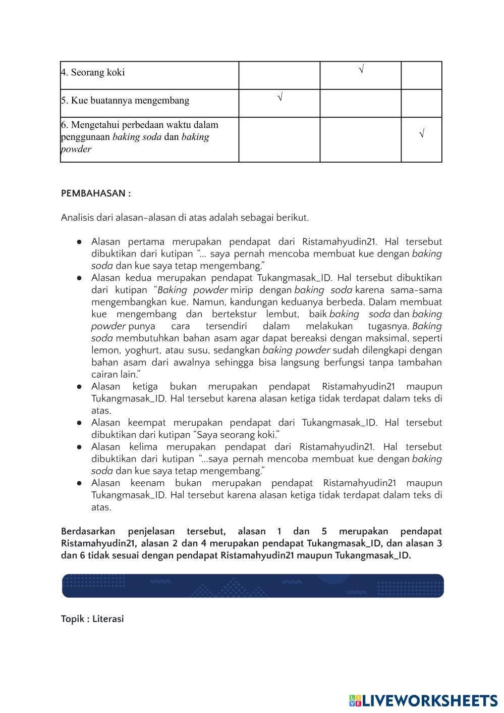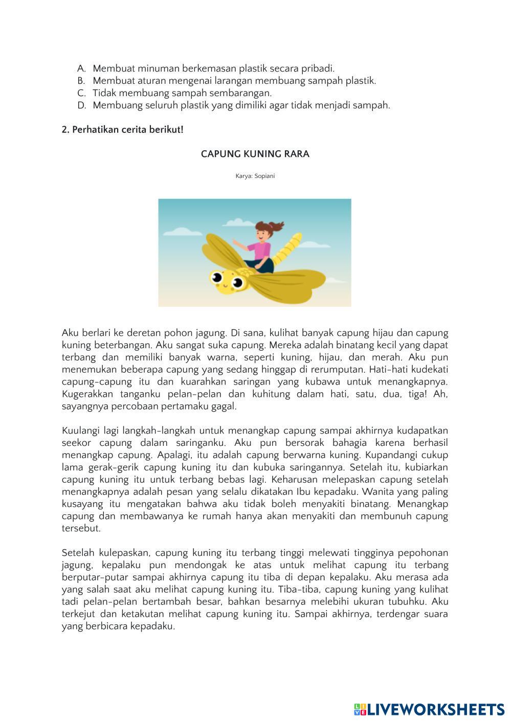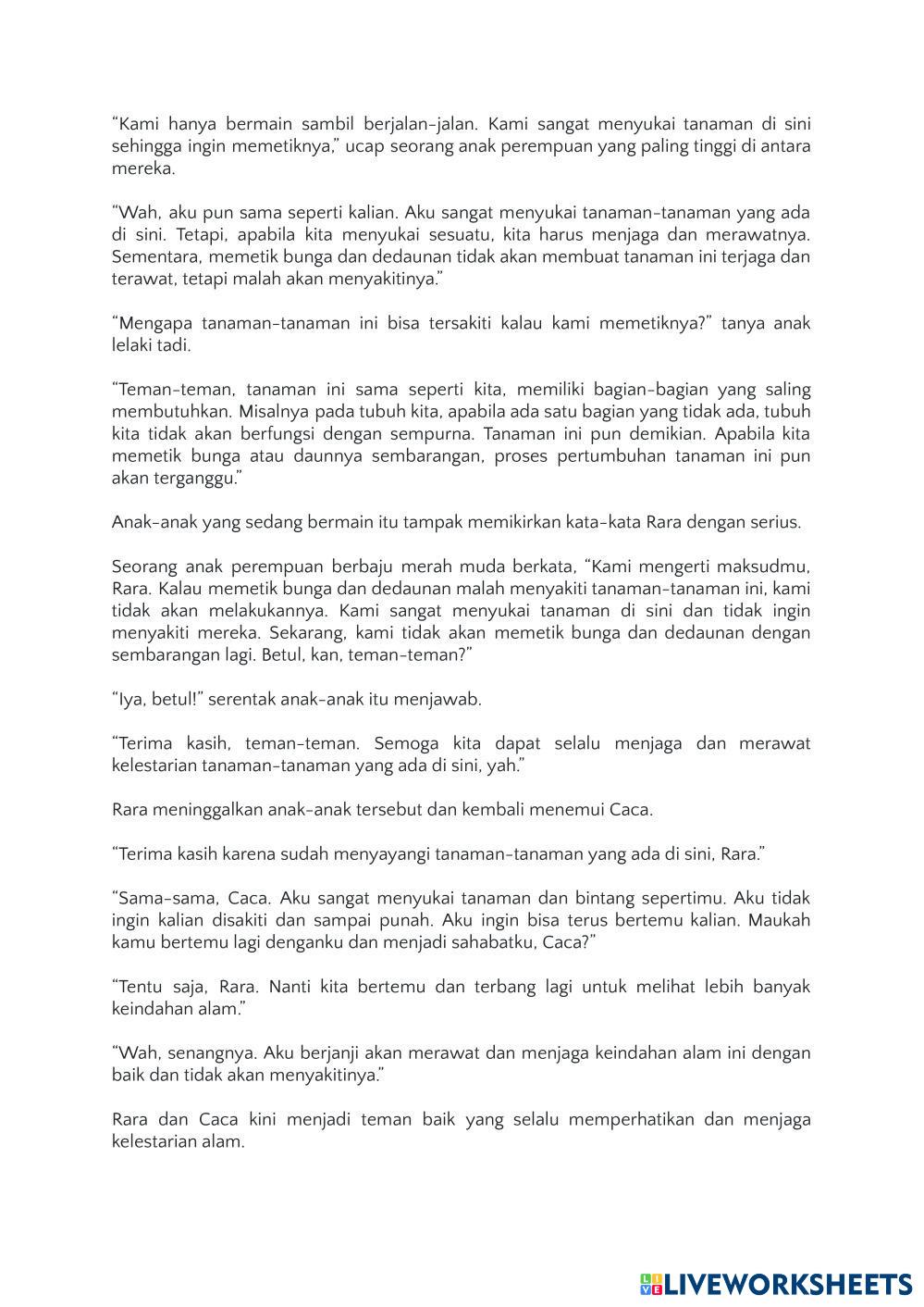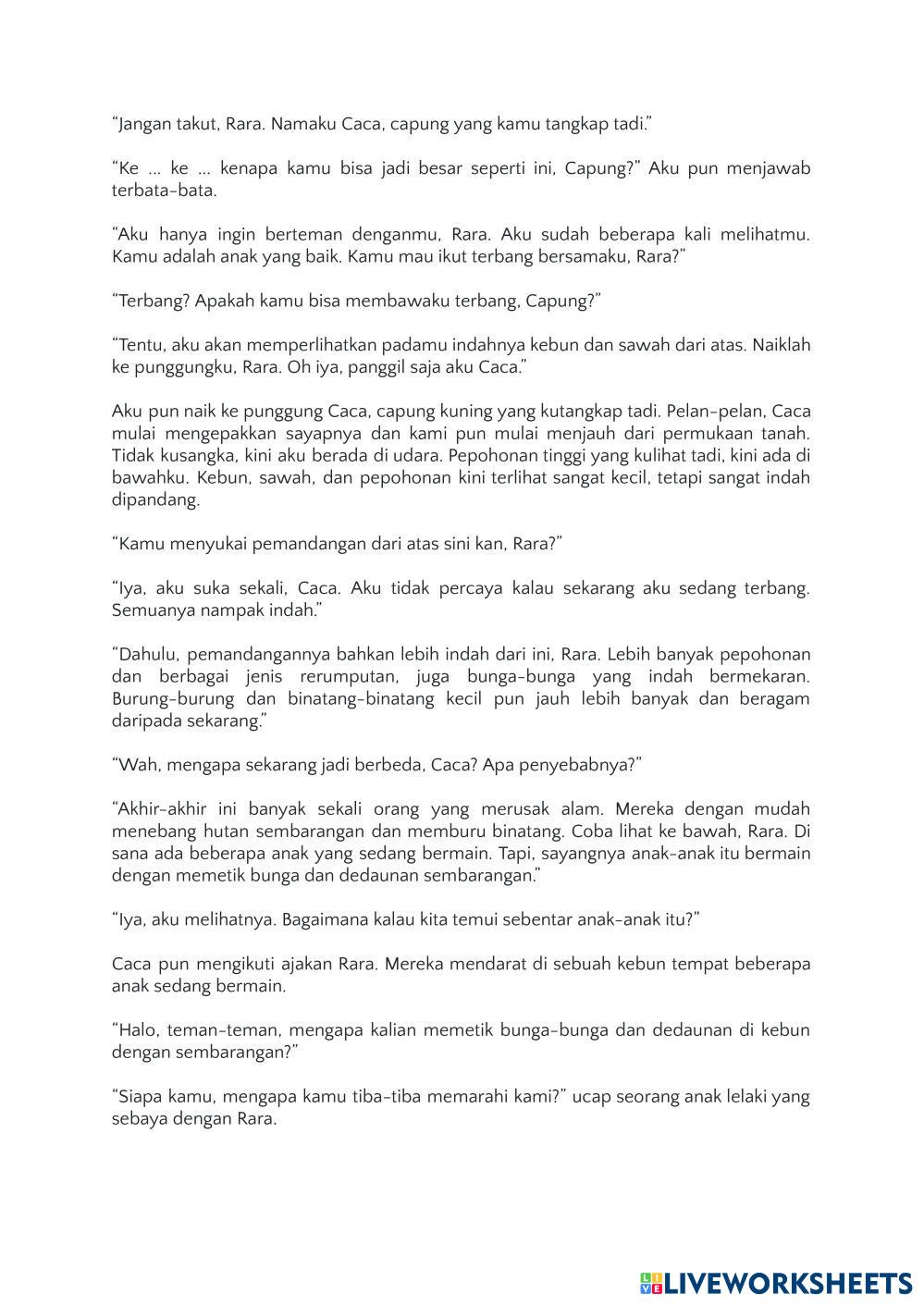 Created byIla Khayati M AKM Literasi Literasi Age 11+ level: 5 Indonesian Author's Instructions My Google Classroom Courses × 0 classes selected (0 students total) Quick Access Select all classes (0 classes) All Classes Loading courses... Cancel Share Share to selected Course __COURSE_NAME__ __STUDENT_NAME__ (__STUDENT_EMAIL__) Literasi Download Worksheet Validation Check my answers Emails my answers to my teacher Full name Group/level School subject Teacher's email or key code Close Submit Validating worksheet... (12) Your answers have been sent to your teacher. Good luck! OK We encountered an error submitting your answers. Please try again. OK Advertisement | Go Ad Free Created byIla Khayati M AKM Literasi Literasi Age 11+ level: 5 Indonesian Author's Instructions