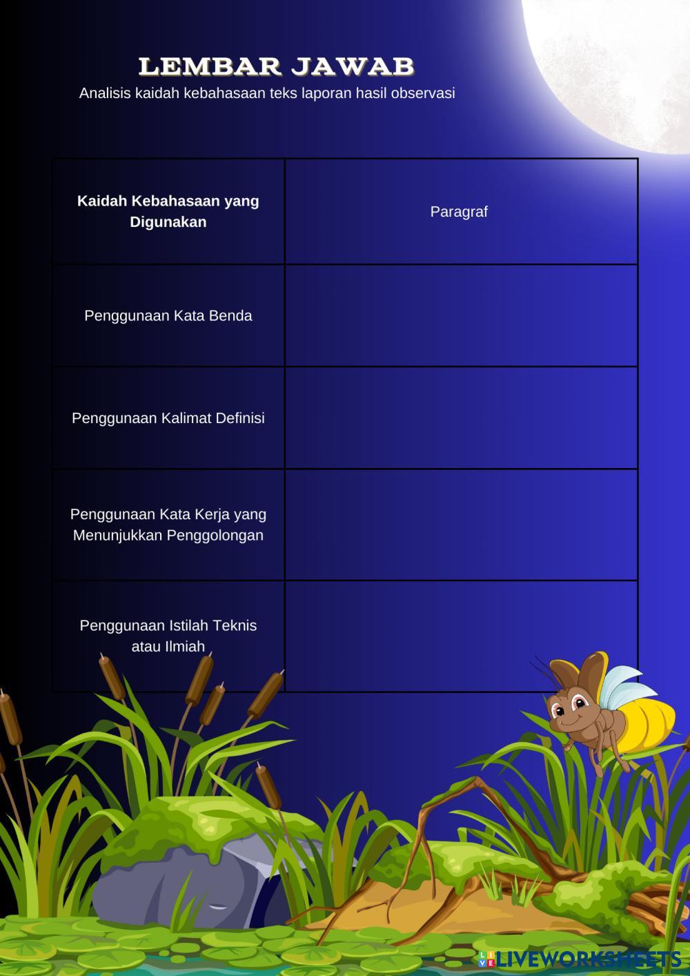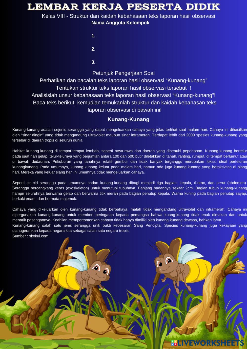 Menganalisis Struktur dan Kaidah Kebahasaan Teks Laporan Hasil Observasi berjudul "Kunang-Kunang"