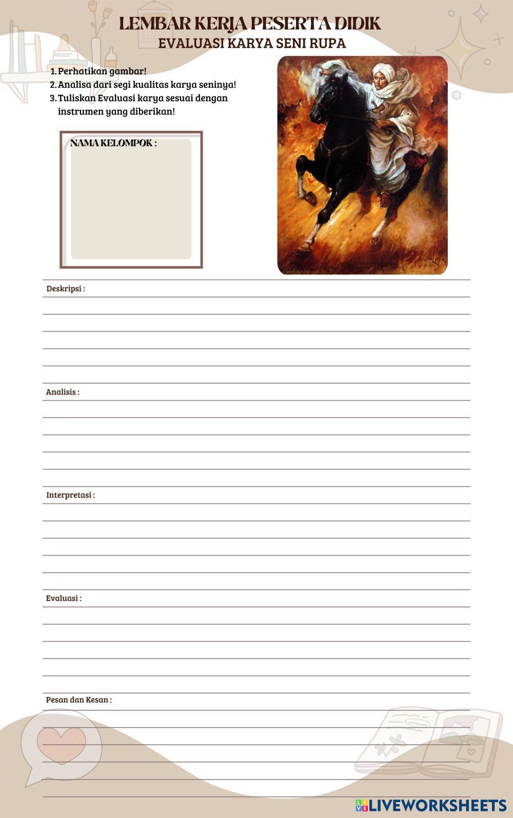 Created by Bella_Resti Art seni rupa Age 15+ level: 10 Indonesian Author's Instructions My Google Classroom Courses × 0 classes selected (0 students total) Quick Access Select all classes (0 classes) All Classes Loading courses... Cancel Share Share to selected Course __COURSE_NAME__ __STUDENT_NAME__ (__STUDENT_EMAIL__) Evaluasi Karya Seni Rupa (A) Download Worksheet Validation Check my answers Emails my answers to my teacher Full name Group/level School subject Teacher's email or key code Close Submit Validating worksheet... (12) Your answers have been sent to your teacher. Good luck! OK We encountered an error submitting your answers. Please try again. OK Advertisement | Go Ad Free Created by Bella_Resti Art seni rupa Age 15+ level: 10 Indonesian Author's Instructions