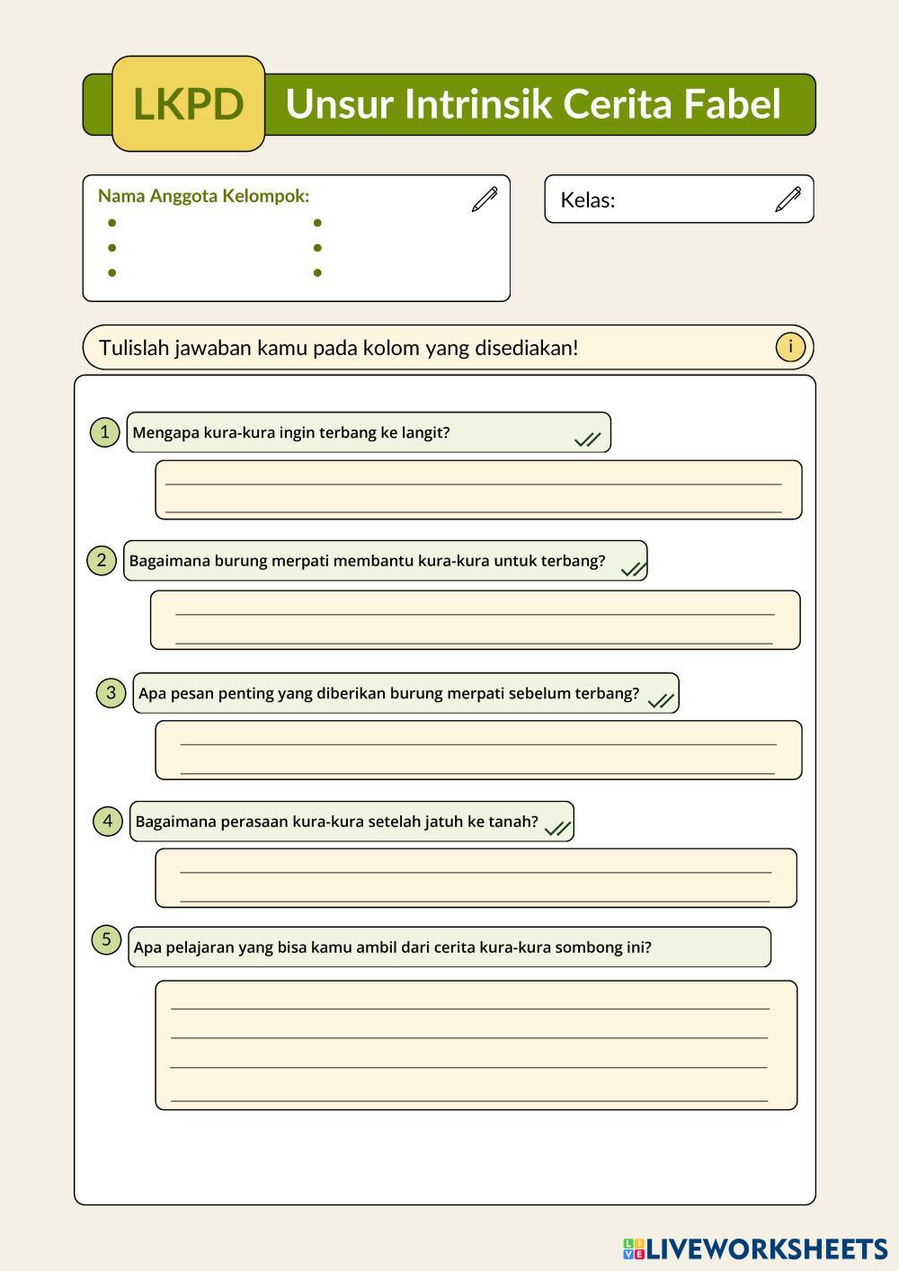 Created by Mrzulkang Bahasa Indonesia Narrative text Age 10-14 level: 6 Indonesian Author's Instructions My Google Classroom Courses × 0 classes selected (0 students total) Quick Access Select all classes (0 classes) All Classes Loading courses... Cancel Share Share to selected Course __COURSE_NAME__ __STUDENT_NAME__ (__STUDENT_EMAIL__) Zulkifli Download Worksheet Validation Check my answers Emails my answers to my teacher Full name Group/level School subject Teacher's email or key code Close Submit Validating worksheet... (12) Your answers have been sent to your teacher. Good luck! OK We encountered an error submitting your answers. Please try again. OK Advertisement | Go Ad Free Created by Mrzulkang Bahasa Indonesia Narrative text Age 10-14 level: 6 Indonesian Author's Instructions