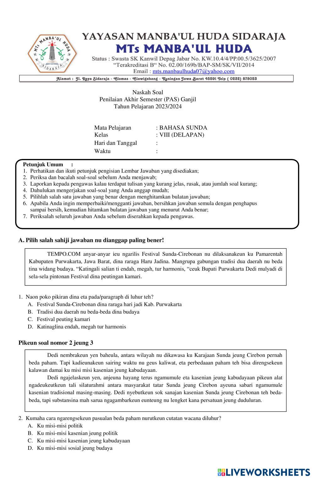SOAL PAS BAHASA SUNDA KELAS 8 MTS MBH