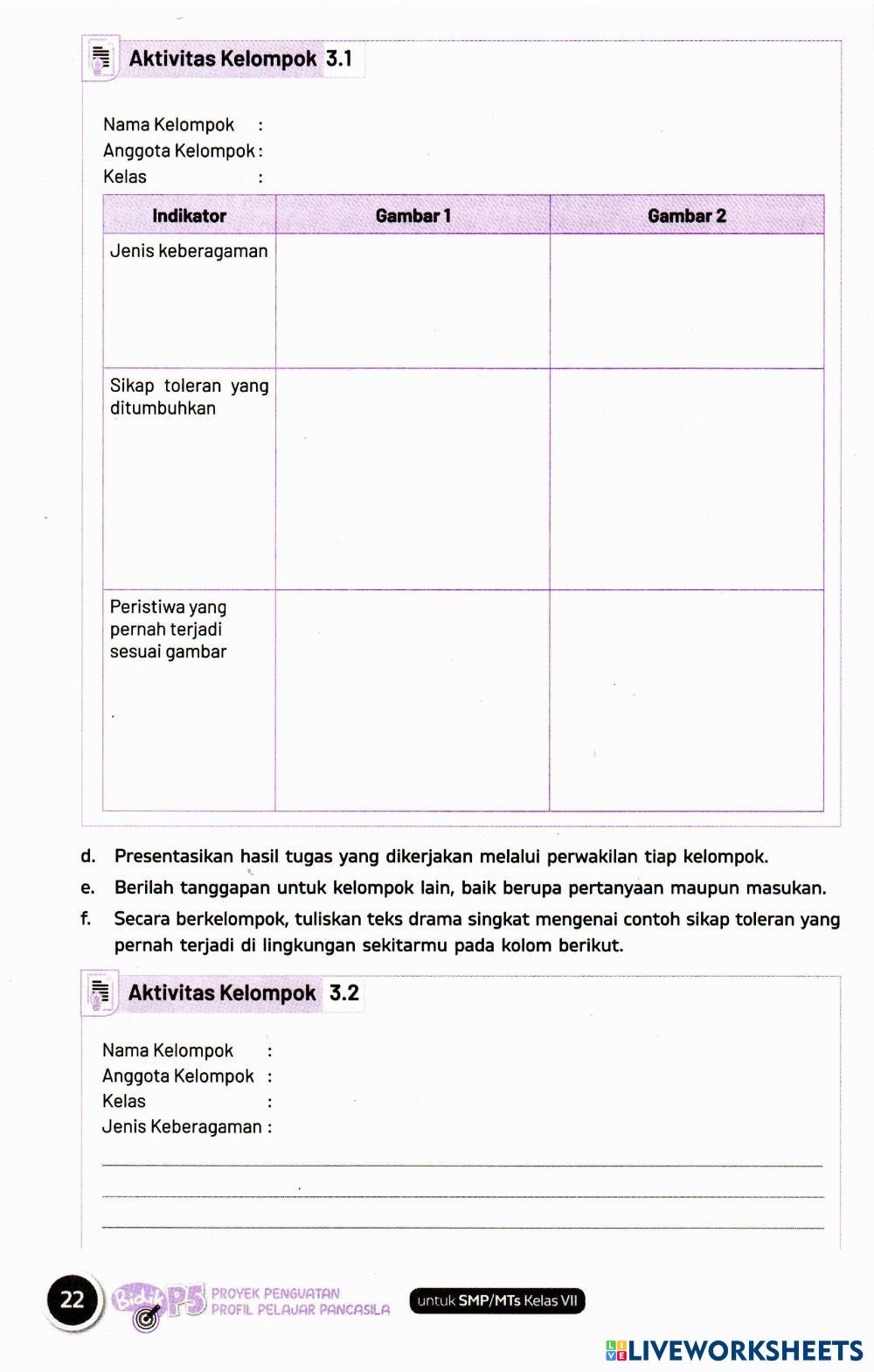 Created byJajang Hermawan Bhinneka Tunggal Ika Pentingnya Tolerasnsi Dalam Keberagaman Age 10+ level: SMP Indonesian Author's Instructions My Google Classroom Courses × 0 classes selected (0 students total) Quick Access Select all classes (0 classes) All Classes Loading courses... Cancel Share Share to selected Course __COURSE_NAME__ __STUDENT_NAME__ (__STUDENT_EMAIL__) E-LKPD P5 Aktivitas 3 Download Worksheet Validation Check my answers Emails my answers to my teacher Full name Group/level School subject Teacher's email or key code Close Submit Validating worksheet... (12) Your answers have been sent to your teacher. Good luck! OK We encountered an error submitting your answers. Please try again. OK Advertisement | Go Ad Free Created byJajang Hermawan Bhinneka Tunggal Ika Pentingnya Tolerasnsi Dalam Keberagaman Age 10+ level: SMP Indonesian Author's Instructions