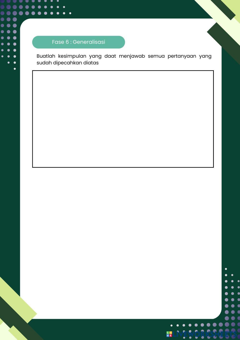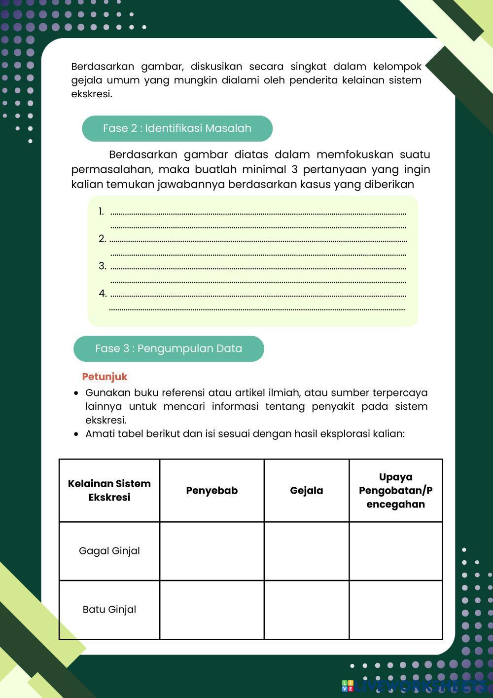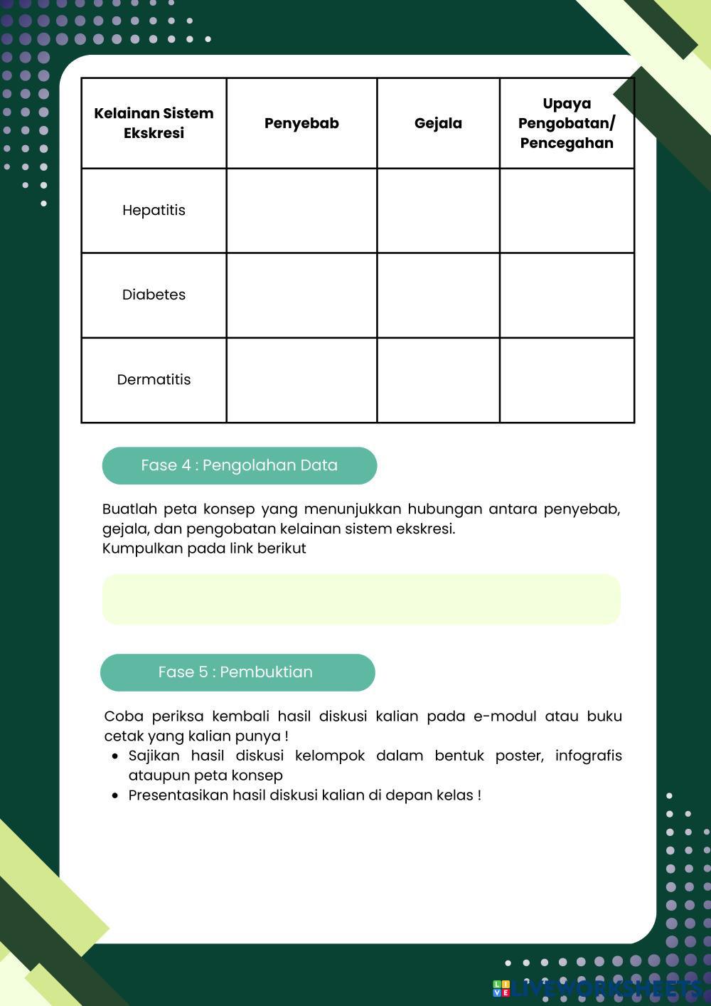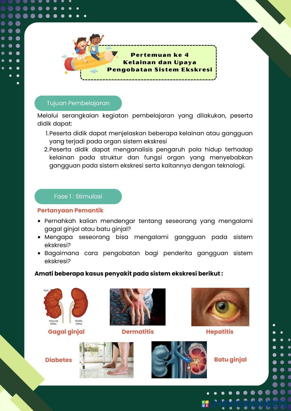 Created byFrasa Puspita Dewi Biology lesson Kelainan dan pengobatan sistem ekskresi Age 16+ level: 11 Indonesian Author's Instructions My Google Classroom Courses × 0 classes selected (0 students total) Quick Access Select all classes (0 classes) All Classes Loading courses... Cancel Share Share to selected Course __COURSE_NAME__ __STUDENT_NAME__ (__STUDENT_EMAIL__) Pertemuan 4 Sistem Ekskresi Download Worksheet Validation Check my answers Emails my answers to my teacher Full name Group/level School subject Teacher's email or key code Close Submit Validating worksheet... (12) Your answers have been sent to your teacher. Good luck! OK We encountered an error submitting your answers. Please try again. OK Advertisement | Go Ad Free Created byFrasa Puspita Dewi Biology lesson Kelainan dan pengobatan sistem ekskresi Age 16+ level: 11 Indonesian Author's Instructions