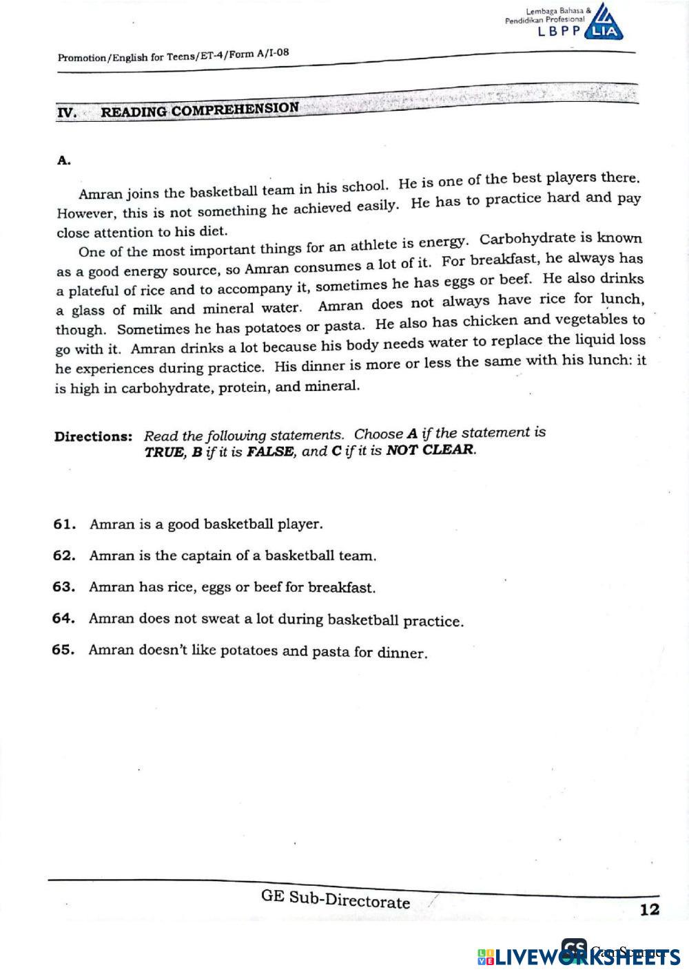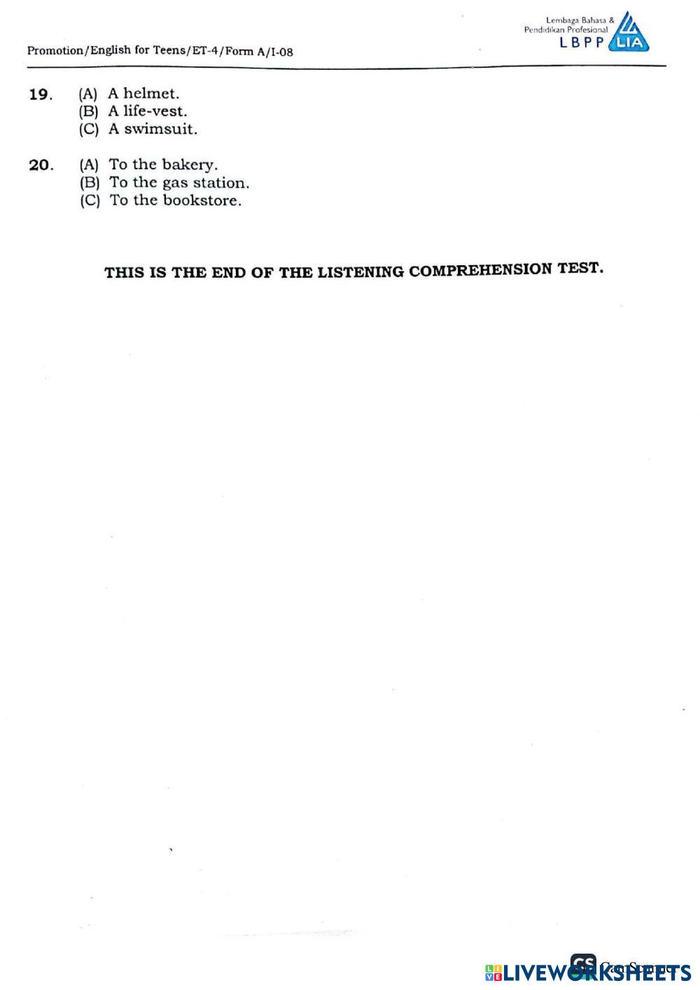 Created by Mdarwis English Exercise Age 10-18 level: Elementary Indonesian Author's Instructions My Google Classroom Courses × 0 classes selected (0 students total) Quick Access Select all classes (0 classes) All Classes Loading courses... Cancel Share Share to selected Course __COURSE_NAME__ __STUDENT_NAME__ (__STUDENT_EMAIL__) Promotion ET 4 Download Worksheet Validation Check my answers Emails my answers to my teacher Full name Group/level School subject Teacher's email or key code Close Submit Validating worksheet... (12) Your answers have been sent to your teacher. Good luck! OK We encountered an error submitting your answers. Please try again. OK Advertisement | Go Ad Free Created by Mdarwis English Exercise Age 10-18 level: Elementary Indonesian Author's Instructions