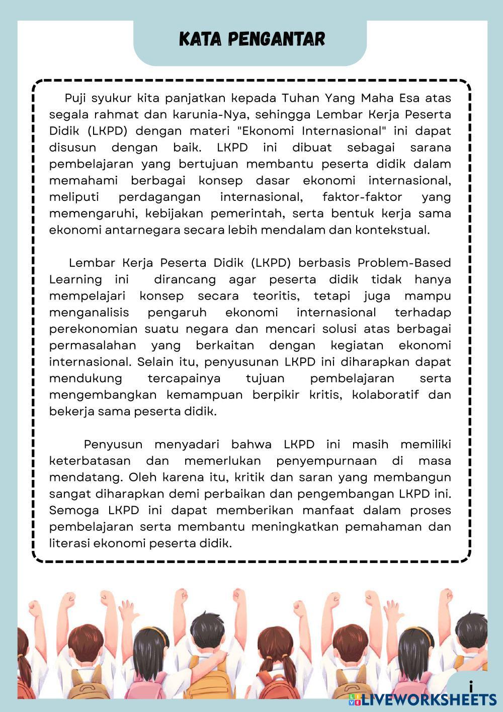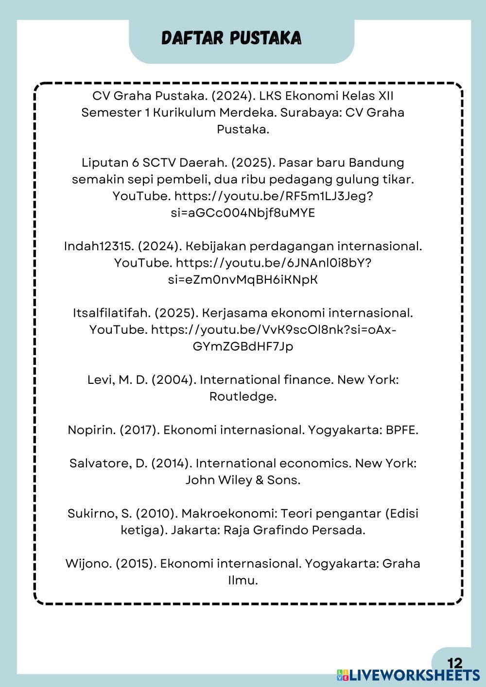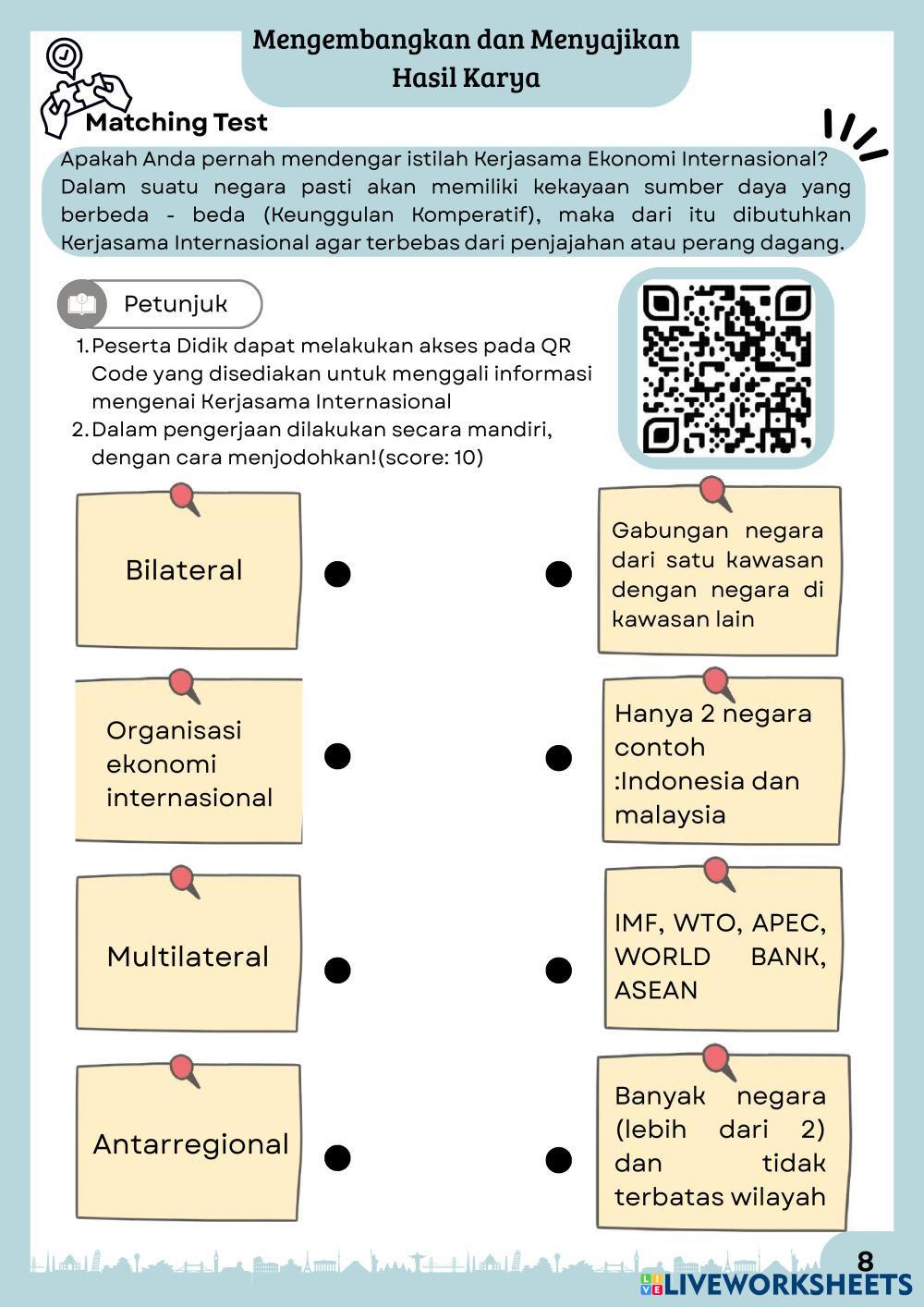 Created by alifalfa ESL Indonesian B1 Writing Indonesian Author's Instructions Kerjakan sesuai arahan My Google Classroom Courses × 0 classes selected (0 students total) Quick Access Select all classes (0 classes) All Classes Loading courses... Cancel Share Share to selected Course __COURSE_NAME__ __STUDENT_NAME__ (__STUDENT_EMAIL__) EKONOMI INTERNASIONAL Download Worksheet Validation Check my answers Emails my answers to my teacher Full name Group/level School subject Teacher's email or key code Close Submit Validating worksheet... (12) Your answers have been sent to your teacher. Good luck! OK We encountered an error submitting your answers. Please try again. OK Advertisement | Go Ad Free Created by alifalfa ESL Indonesian B1 Writing Indonesian Author's Instructions Kerjakan sesuai arahan Explore Worksheets MENYEBUTKAN NAMA ATRIBUT PRAMUKA ESL B1 MENYEBUTKAN NAMA ATRIBUT PRAMUKA Writing - ESL SEBUTKAN DAN COCOKKAN Ulangan Seni Budaya Kelas 7 ESL B1 Ulangan Seni Budaya Kelas 7 Writing - ESL Pilih 1 jawaban dari 1 soal, tidak boleh lebih ASTS BTQ Kelas 7 Genap 25/26 ESL B1 ASTS BTQ Kelas 7 Genap 25/26 Writing - ESL Al-Qoriah LKPD Reproduksi Bakteri ESL B1 LKPD Reproduksi Bakteri Writing - ESL mengetahui proses reproduksi bakteri dan mendeskrisipsikan tahapannya