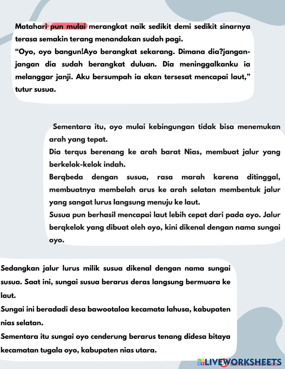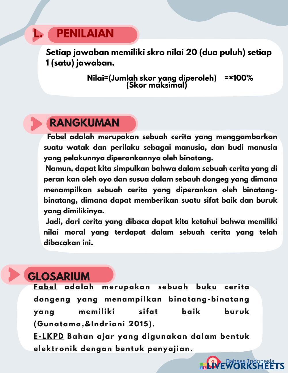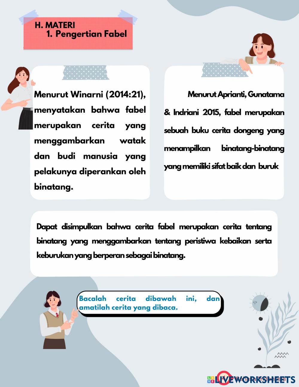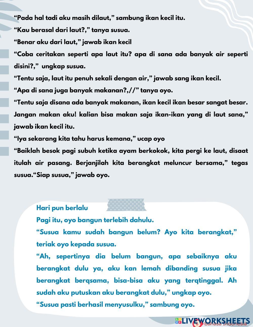 Created byannariatinazara Fabel cerita fabel Age 14-18 level: 7 Indonesian Author's Instructions cerita fabel My Google Classroom Courses × 0 classes selected (0 students total) Quick Access Select all classes (0 classes) All Classes Loading courses... Cancel Share Share to selected Course __COURSE_NAME__ __STUDENT_NAME__ (__STUDENT_EMAIL__) anariati nazara Download Worksheet Validation Check my answers Emails my answers to my teacher Full name Group/level School subject Teacher's email or key code Close Submit Validating worksheet... (12) Your answers have been sent to your teacher. Good luck! OK We encountered an error submitting your answers. Please try again. OK Advertisement | Go Ad Free Created byannariatinazara Fabel cerita fabel Age 14-18 level: 7 Indonesian Author's Instructions cerita fabel