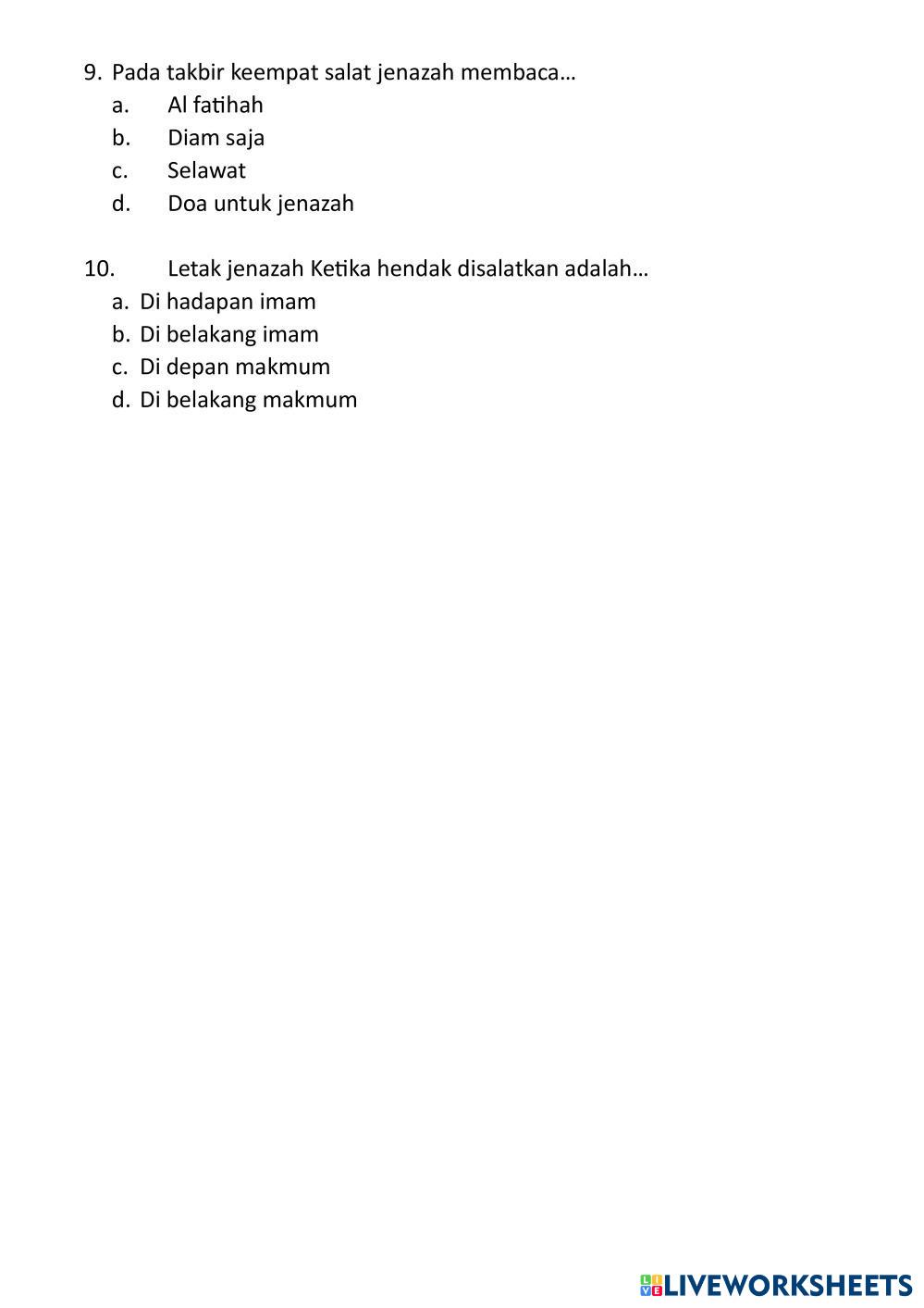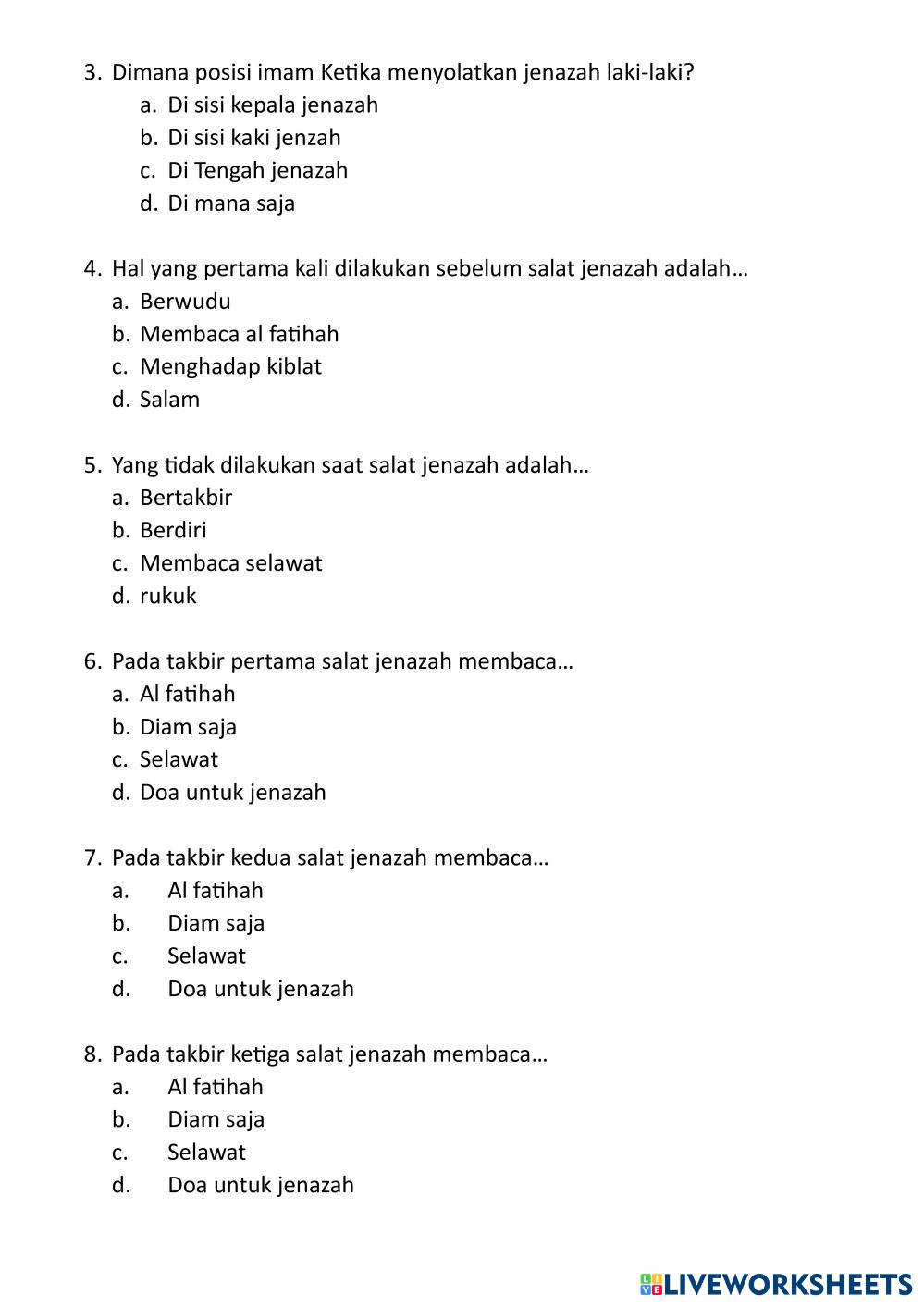 Created byIchdayana Hajjah Nuriah Fikih Ibadah Salat Jenazah Age 14+ level: 8 Indonesian Author's Instructions My Google Classroom Courses × 0 classes selected (0 students total) Quick Access Select all classes (0 classes) All Classes Loading courses... Cancel Share Share to selected Course __COURSE_NAME__ __STUDENT_NAME__ (__STUDENT_EMAIL__) LKPD_FIKIH IBADAH Download Worksheet Validation Check my answers Emails my answers to my teacher Full name Group/level School subject Teacher's email or key code Close Submit Validating worksheet... (12) Your answers have been sent to your teacher. Good luck! OK We encountered an error submitting your answers. Please try again. OK Advertisement | Go Ad Free Created byIchdayana Hajjah Nuriah Fikih Ibadah Salat Jenazah Age 14+ level: 8 Indonesian Author's Instructions