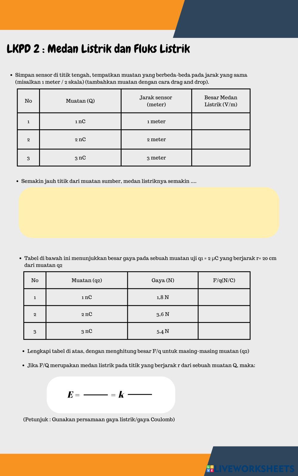 Created by RestiNovika FISIKA Listrik statis Age 15 level: 12 Indonesian Author's Instructions My Google Classroom Courses × 0 classes selected (0 students total) Quick Access Select all classes (0 classes) All Classes Loading courses... Cancel Share Share to selected Course __COURSE_NAME__ __STUDENT_NAME__ (__STUDENT_EMAIL__) LKPD. Medan Listrik Download Worksheet Validation Check my answers Emails my answers to my teacher Full name Group/level School subject Teacher's email or key code Close Submit Validating worksheet... (12) Your answers have been sent to your teacher. Good luck! OK We encountered an error submitting your answers. Please try again. OK Advertisement | Go Ad Free Created by RestiNovika FISIKA Listrik statis Age 15 level: 12 Indonesian Author's Instructions